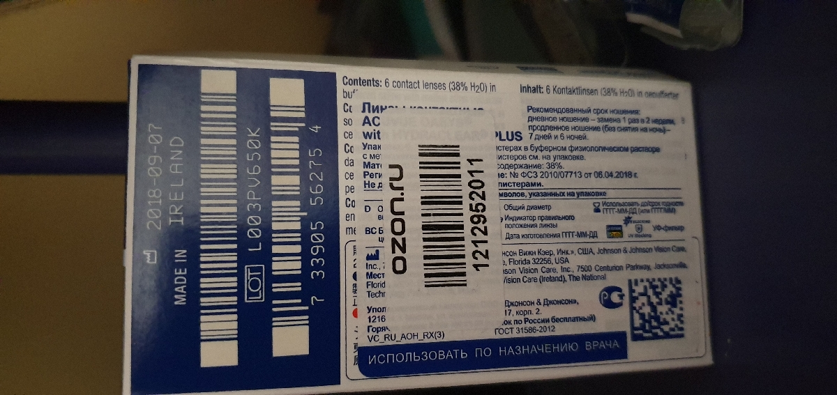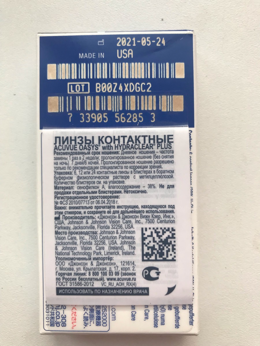 ACUVUE Контактные линзы Johnson & Johnson Oasys 6шт / 8.4, 6 шт., -1.25 / 8.4/ Двухнедельные