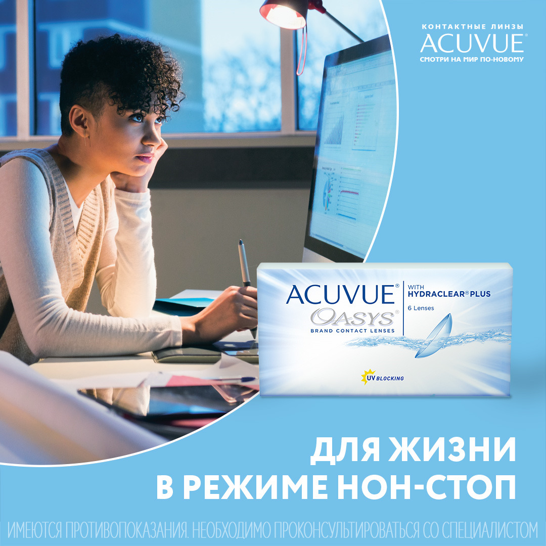 ACUVUE Контактные линзы OASYS with HYDRACLEAR PLUS (6 линз), 6 шт., -4.00 / 8.4/ Двухнедельные