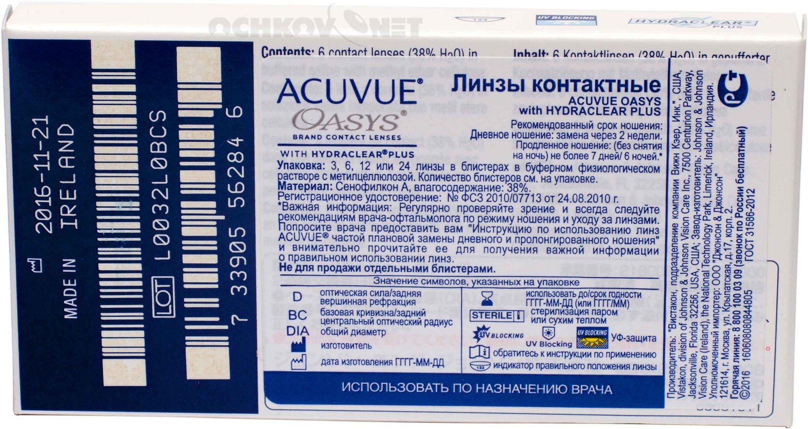 ACUVUE Контактные линзы Oasys with Hydraclear Plus, 6 шт., -11.50 / 8.4/ Двухнедельные