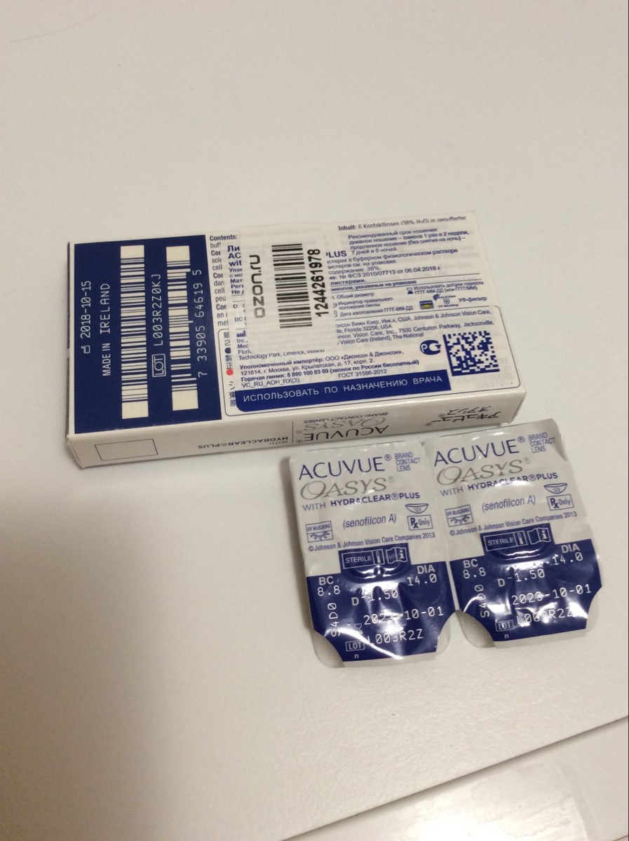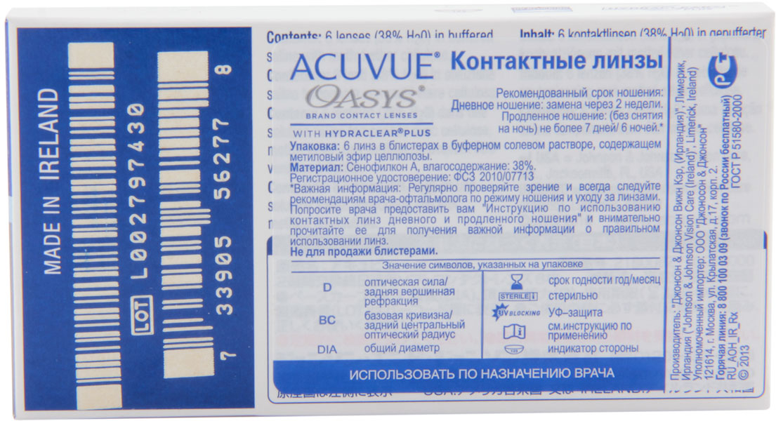ACUVUE Контактные линзы Johnson & Johnson Oasys 6шт / 8.4, 6 шт., -1.25 / 8.4/ Двухнедельные