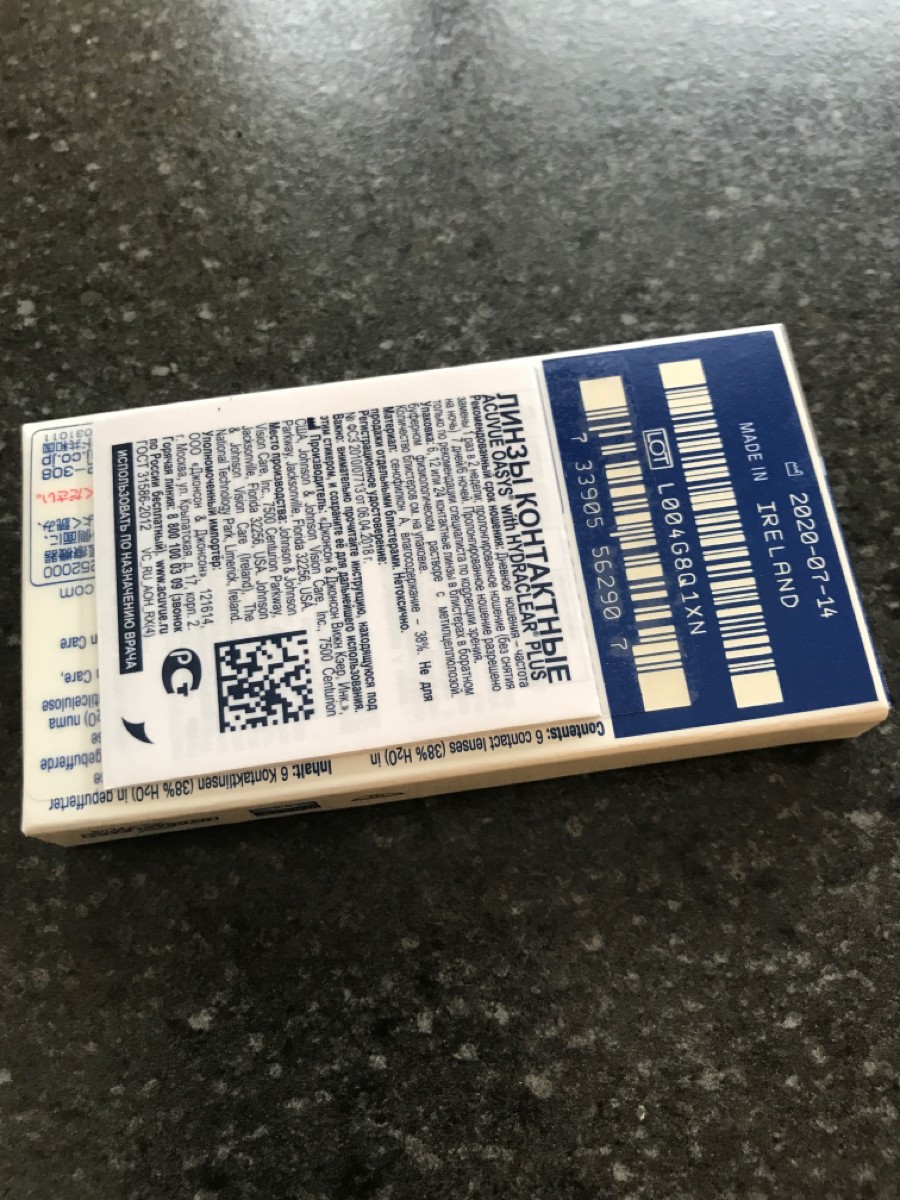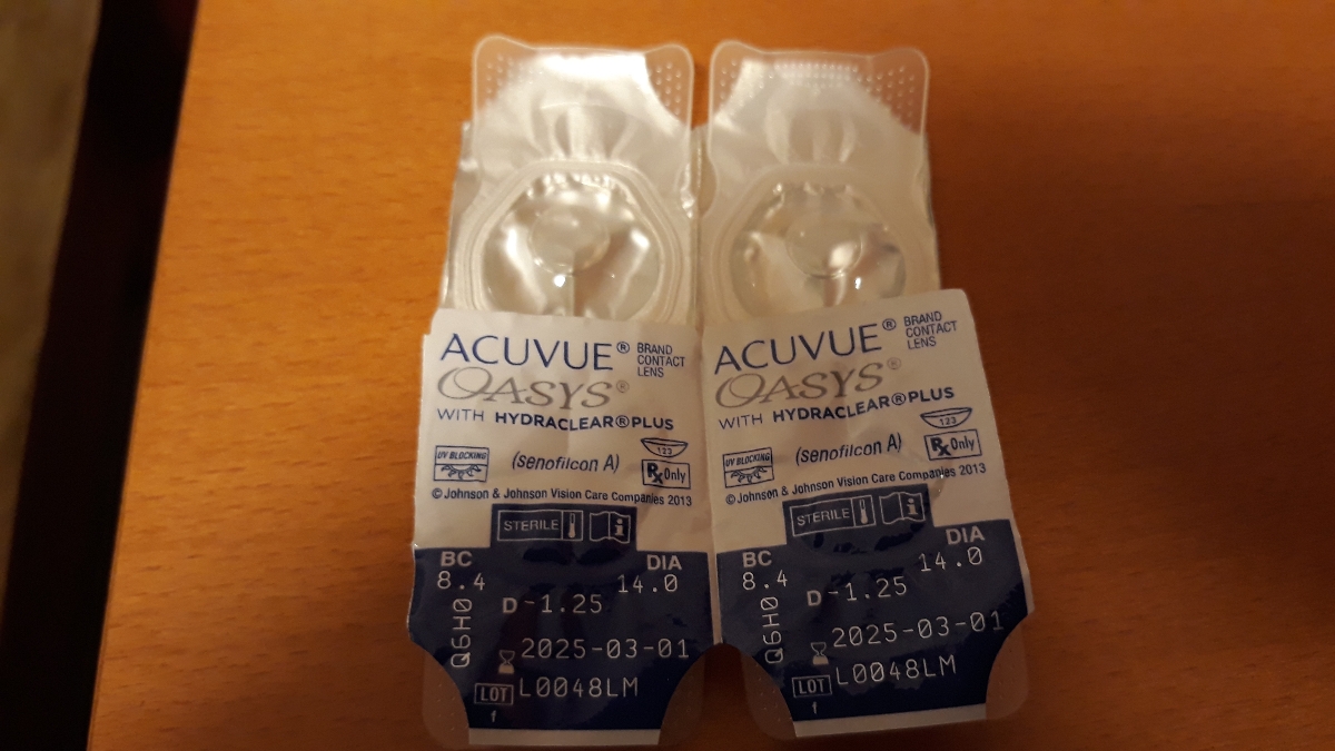 Контактные линзы Acuvue Oasys радиус кривизны 8.4 оптическая сила -1.75 (24 штуки в упаковке)