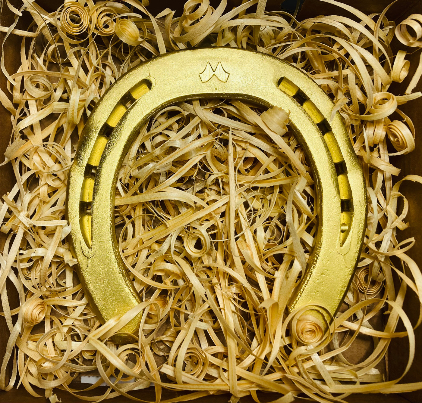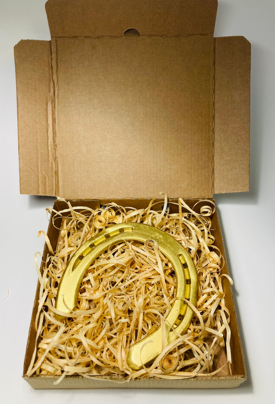 Сувенирная подкова в подарок на свадьбу, годовщину, металлическая, золотая