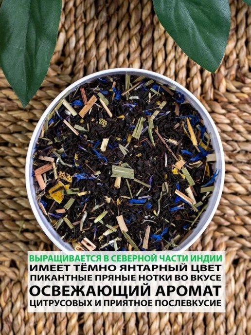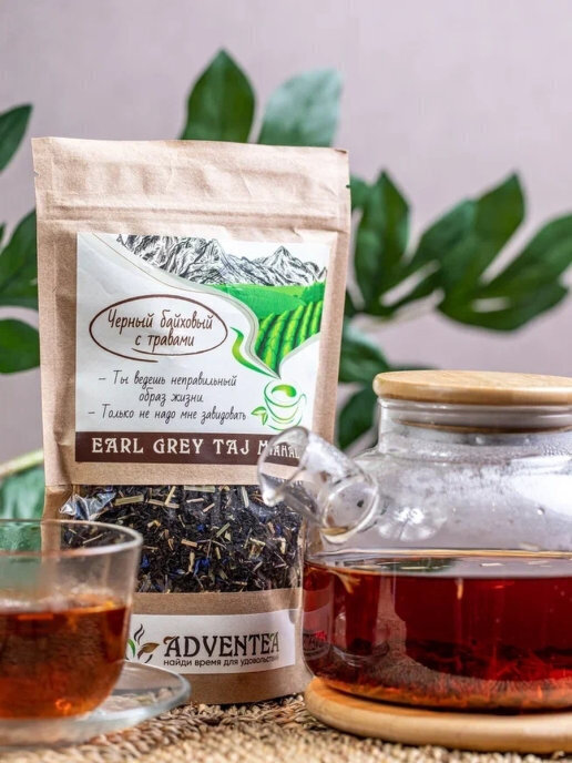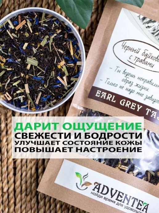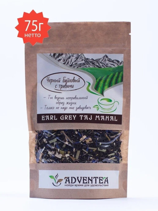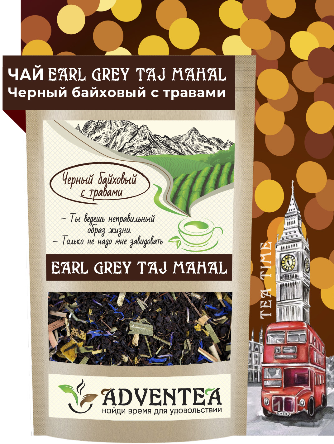 EARL GREY TAJMAHAL чай чёрный индийский байховый листовой с бергамотом ADVENTEA, 75г, с Лемонграсс, Цедра апельсина, Василёк