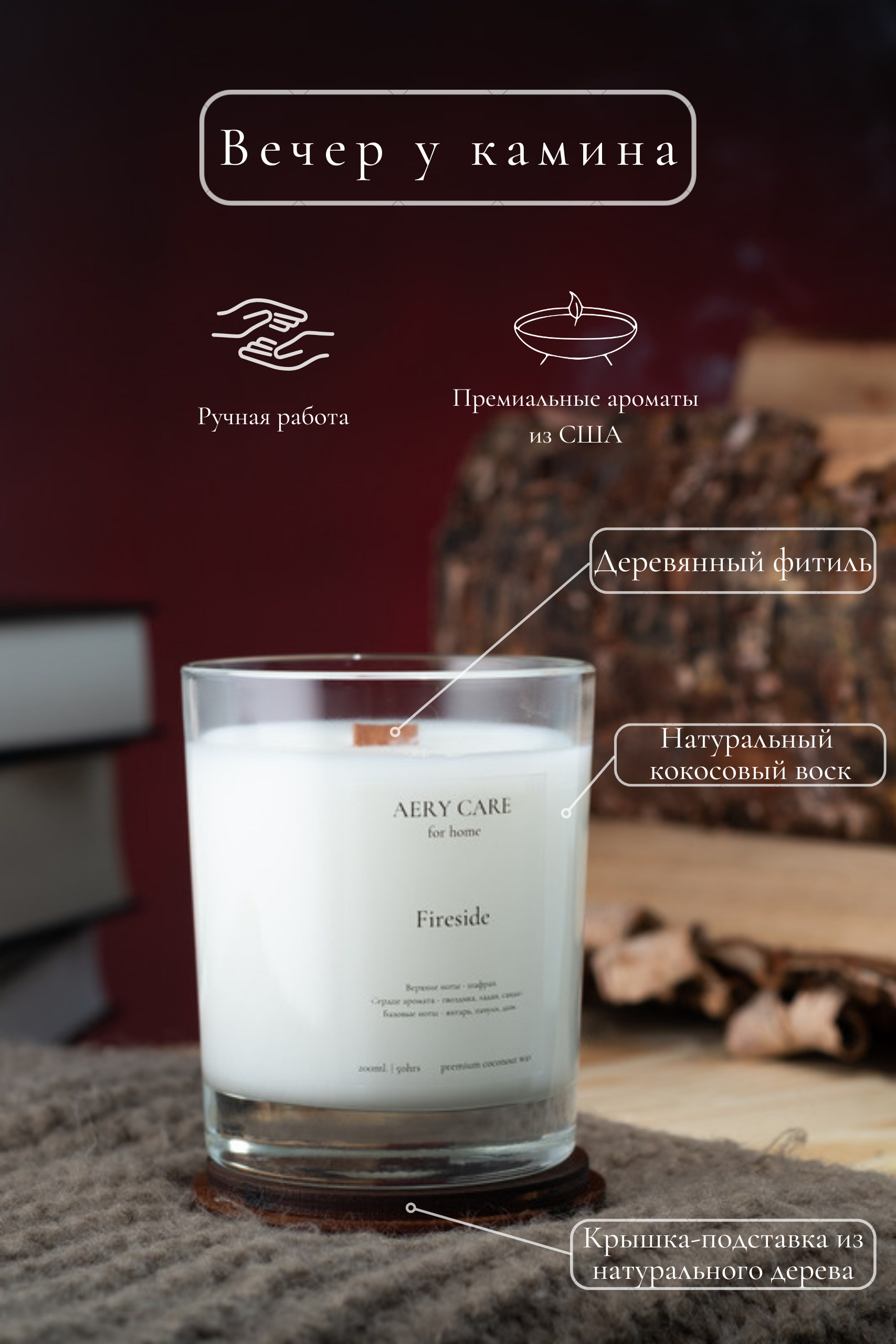 Свеча ароматическая AERY CARE "Вечер у камина / Fireside", 10 см х 7.5 см, 1 шт