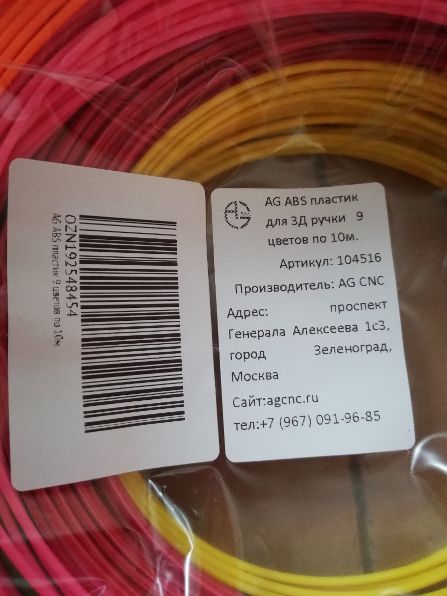 AG ABS 3D пластик 7 цветов по 10м для 3Д ручек.