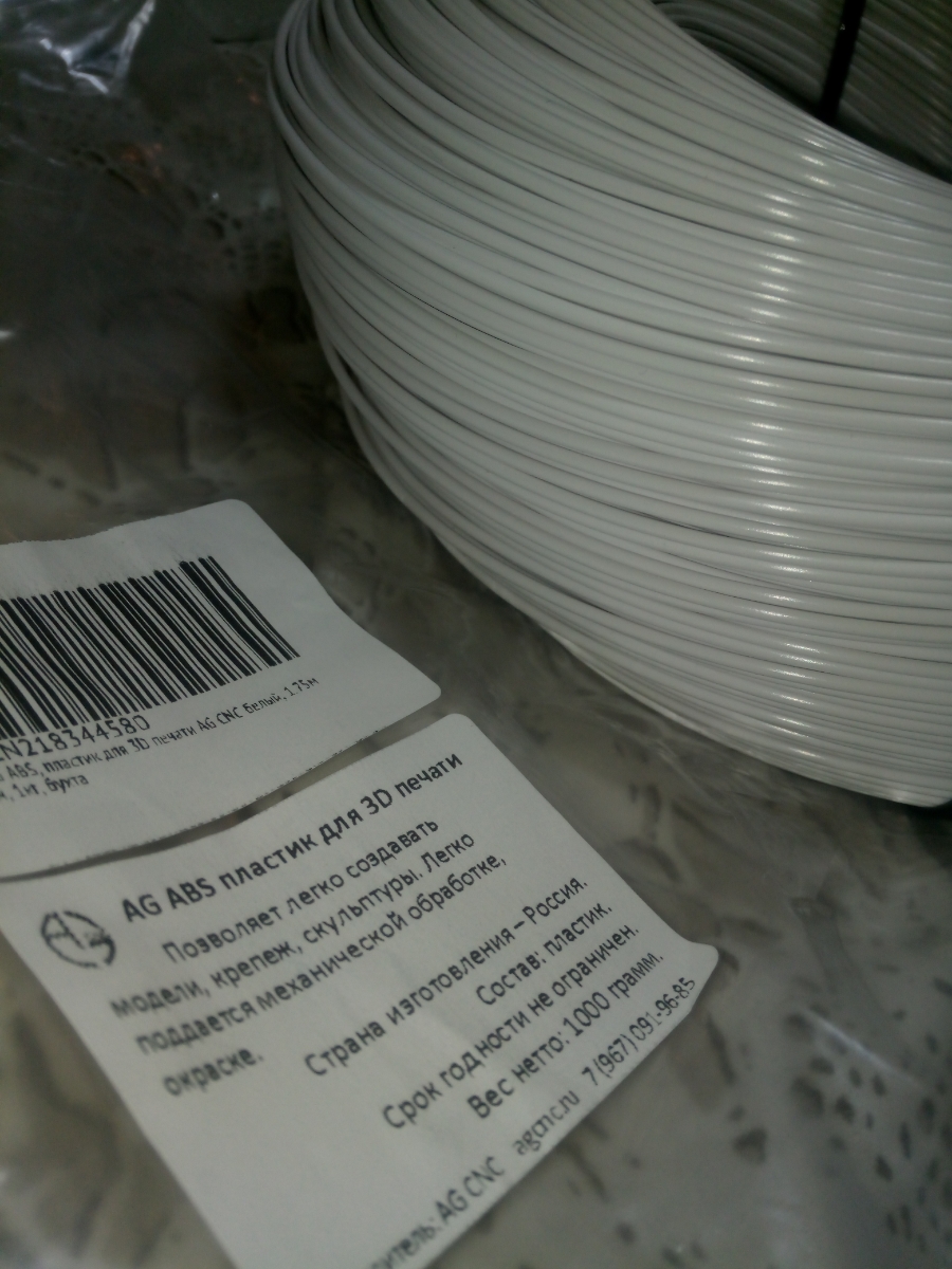 AG ABS, пластик для 3D печати AG CNC чёрный, 1.75мм, 1кг, бухта