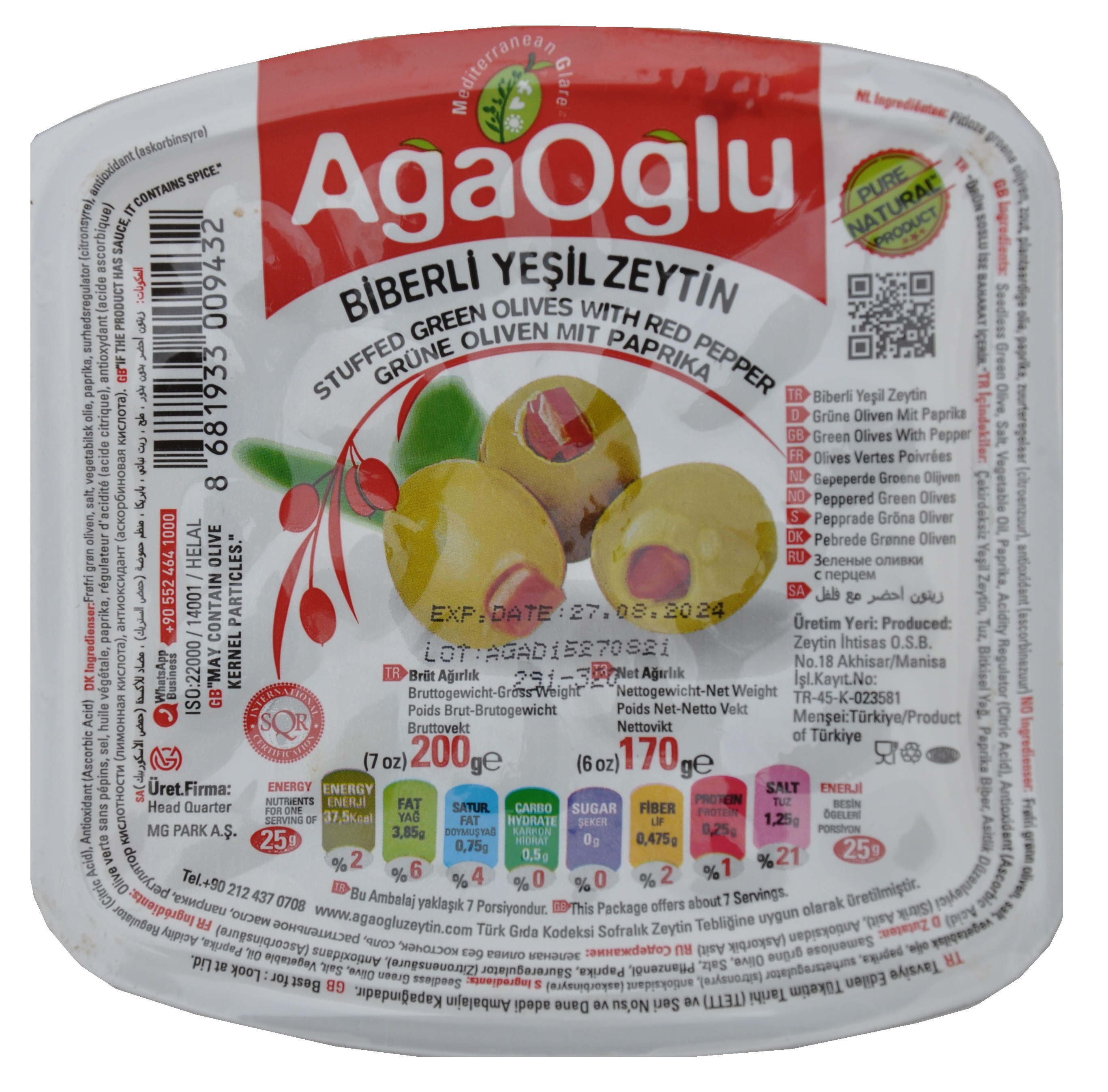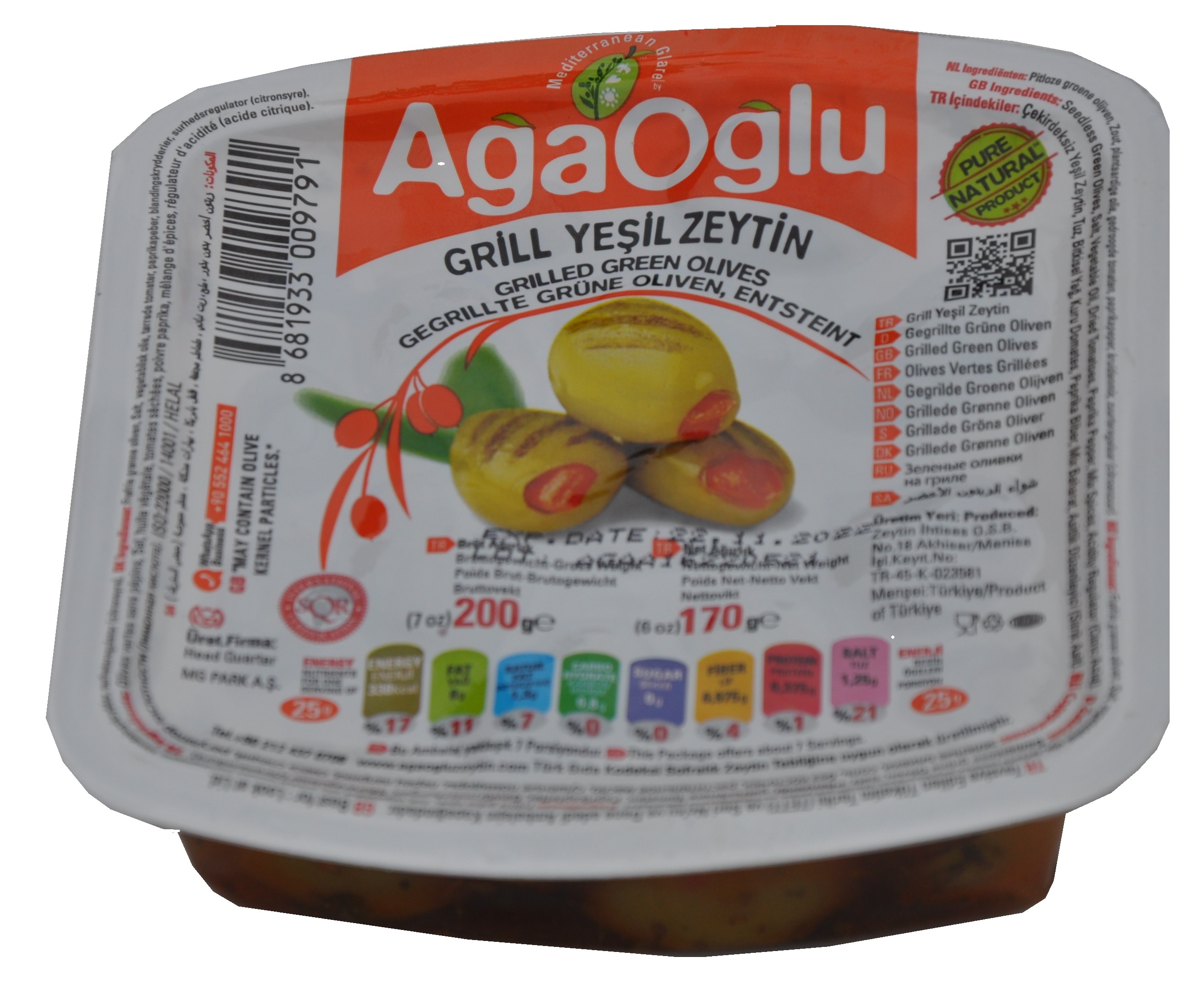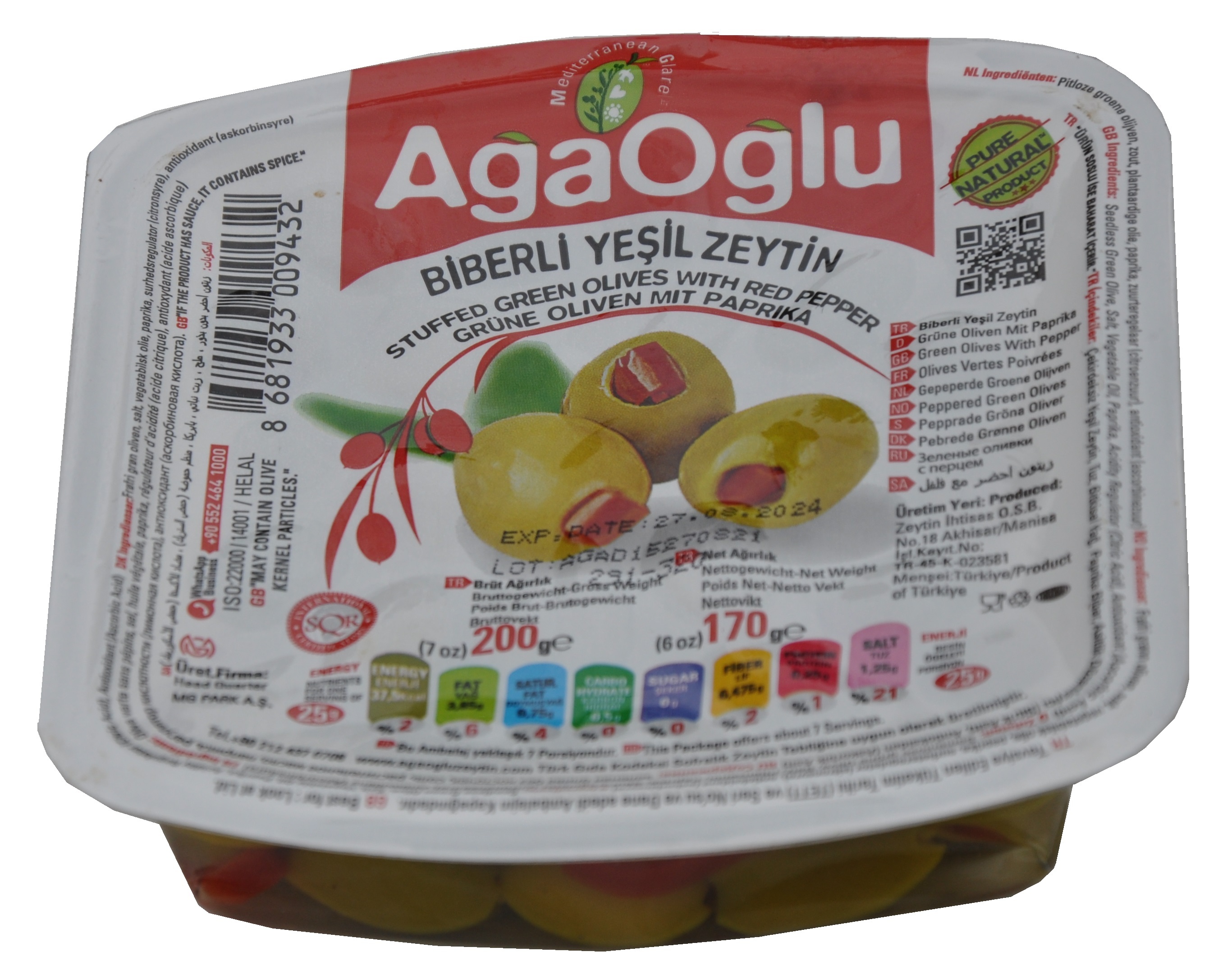 Оливки на гриле фаршированные сладким перцем AGAOGLU 200 гр