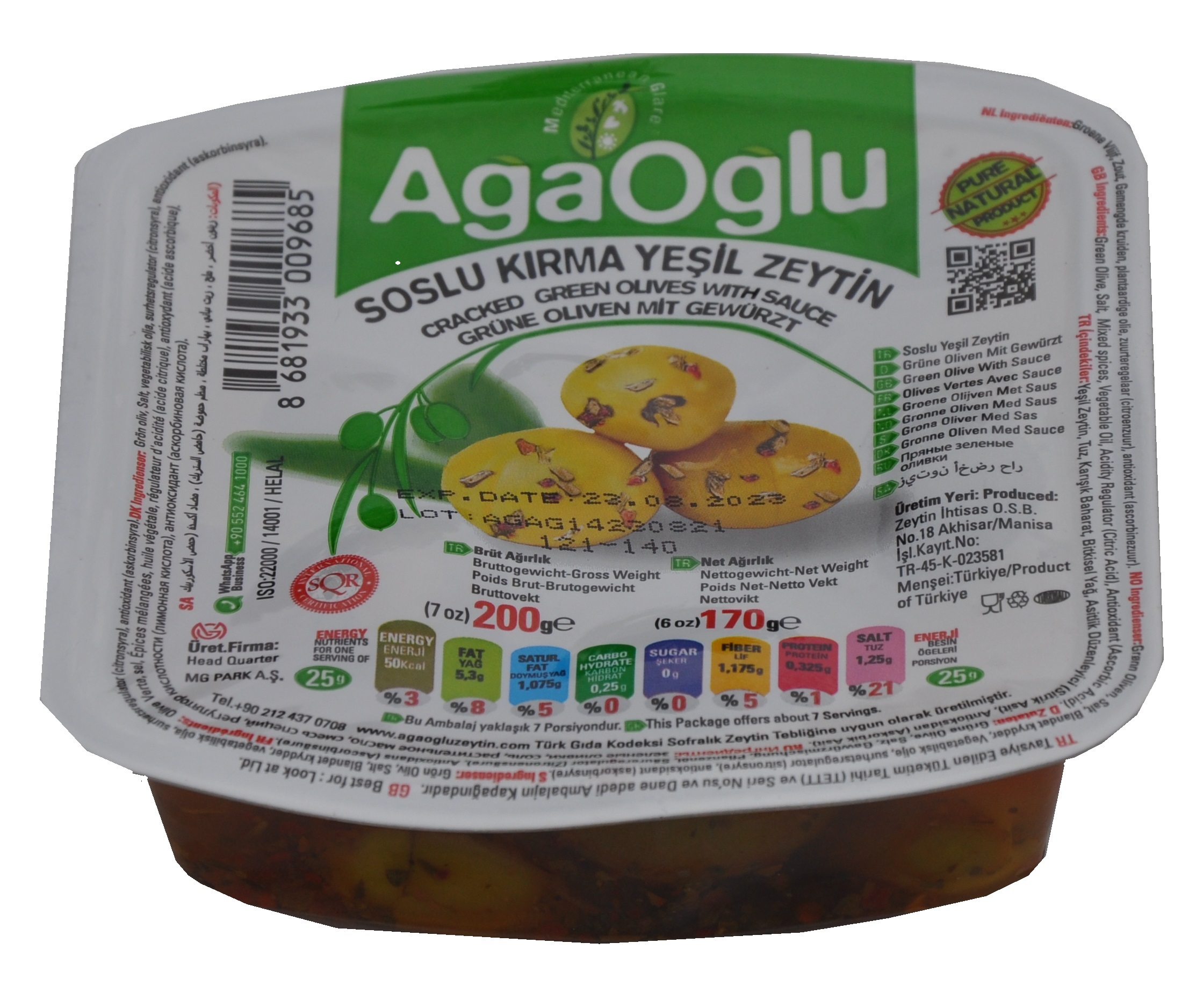 Оливки "AgaOglu" 200 гр Soslu kirma Yesil с перцем и специями