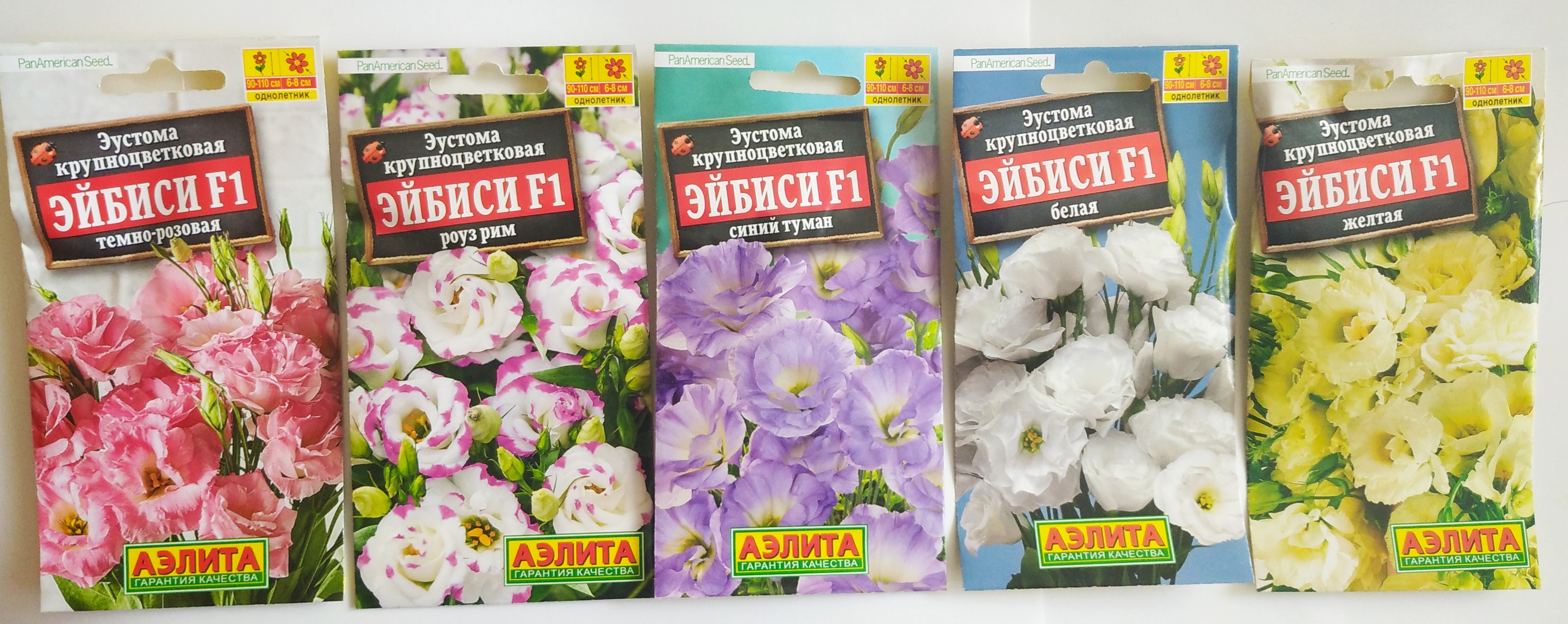 Набор Эустома Эйбиси белая, желтая, синий туман, роуз рим, темно-розовая по 5 шт семян в каждой