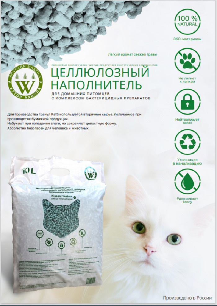 Наполнитель для кошачьего туалета целлюлозный с усиленным бактерицидным свойством Ahvolan Maatila 10 Л