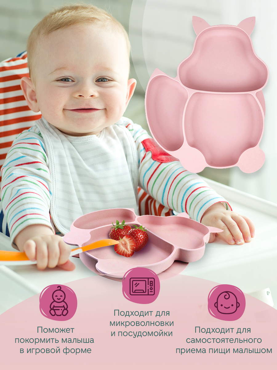 Тарелка силиконовая на присоске/ посуда для прикорма ребенка / розовый