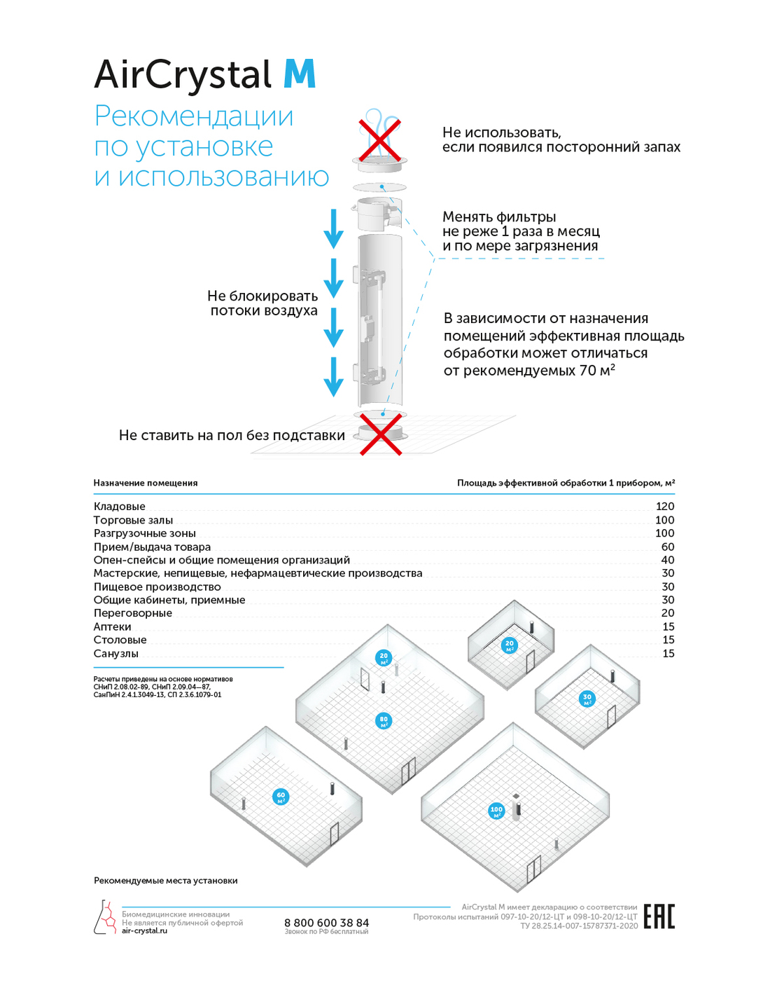 Облучатель-рециркулятор AirCrystal M120 Производительность 120м3/час