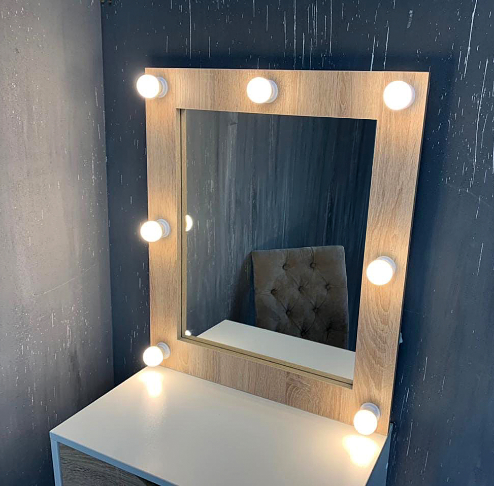 Консоль, Туалетный столик Туалетный столик, Зеркало гримерное с подсветкой 60х90х35, 60х35х90 см