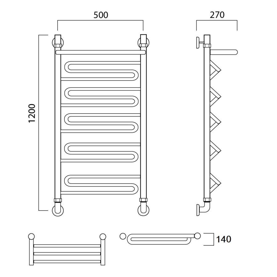 Водяной полотенцесушитель Акванерж Прямой с полкой 1200x600