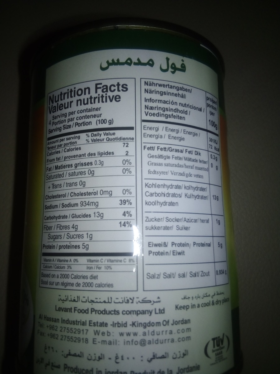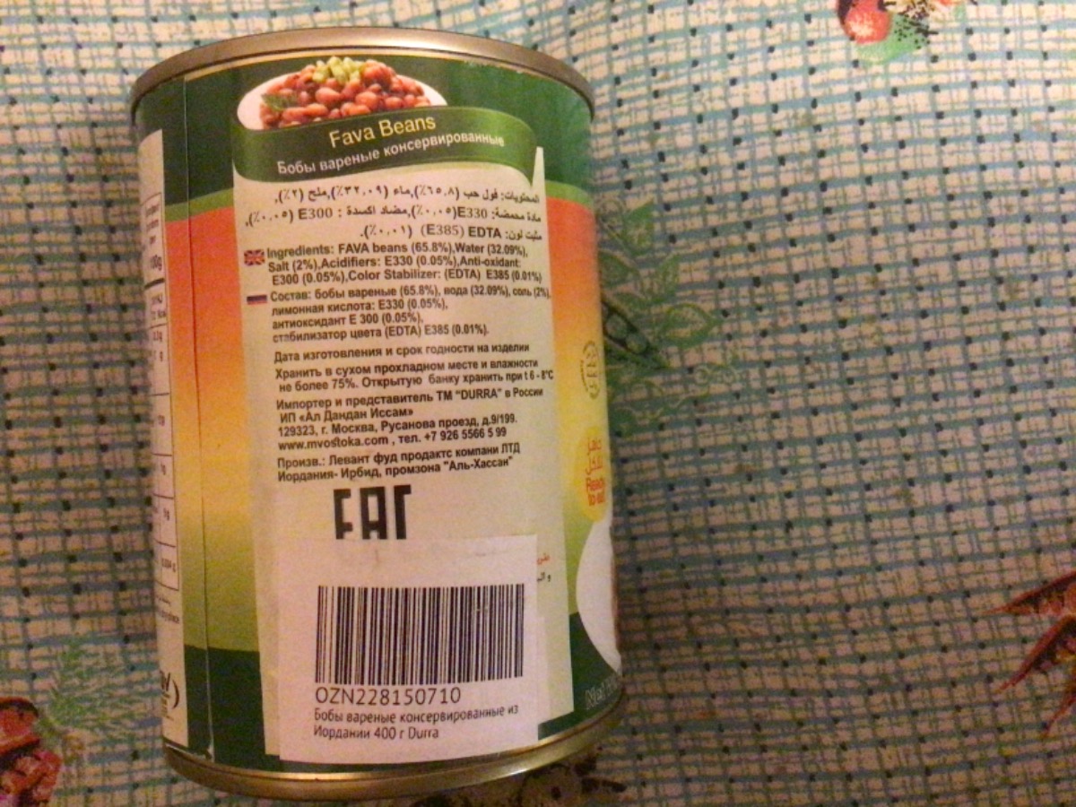 Фуль (Бобы вареные консервированные) по-дамасски из Иордании, 400 г Durra
