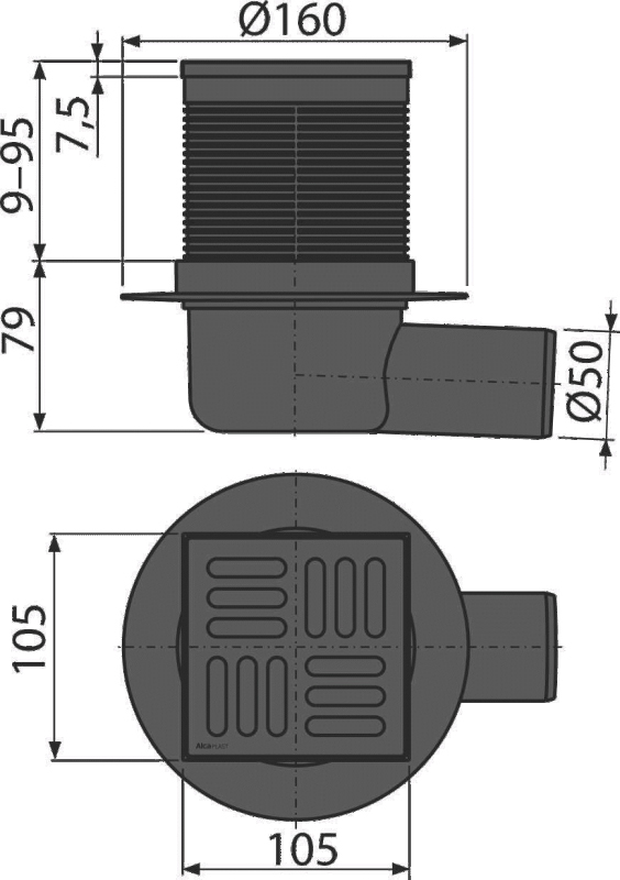 Черный трап для душа Alcaplast APV31BLACK, Чехия
