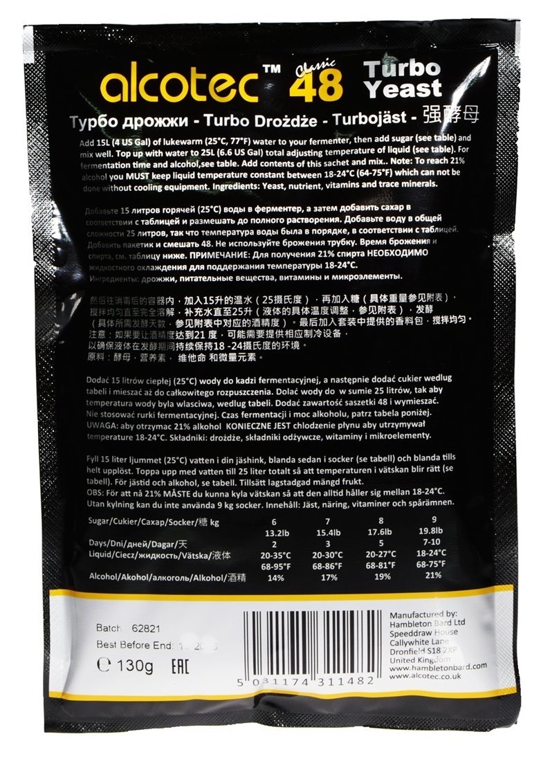 Спиртовые дрожжи Alcotec Pure 48 Turbo (оригинальный), 135 г