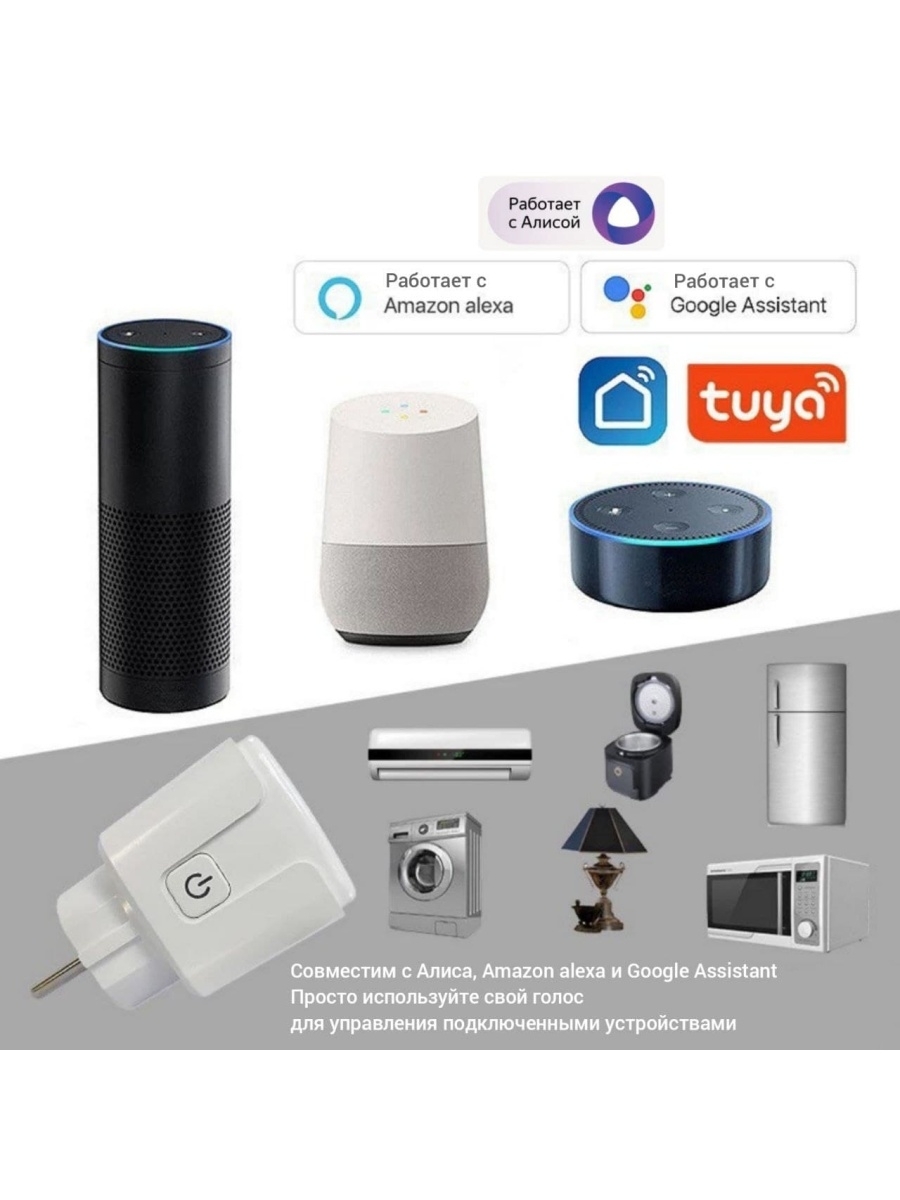 Умная Wi-fi розетка/ беспроводная розетка/ совместима с Яндекс Алиса, Tuya Smart/ умный дом