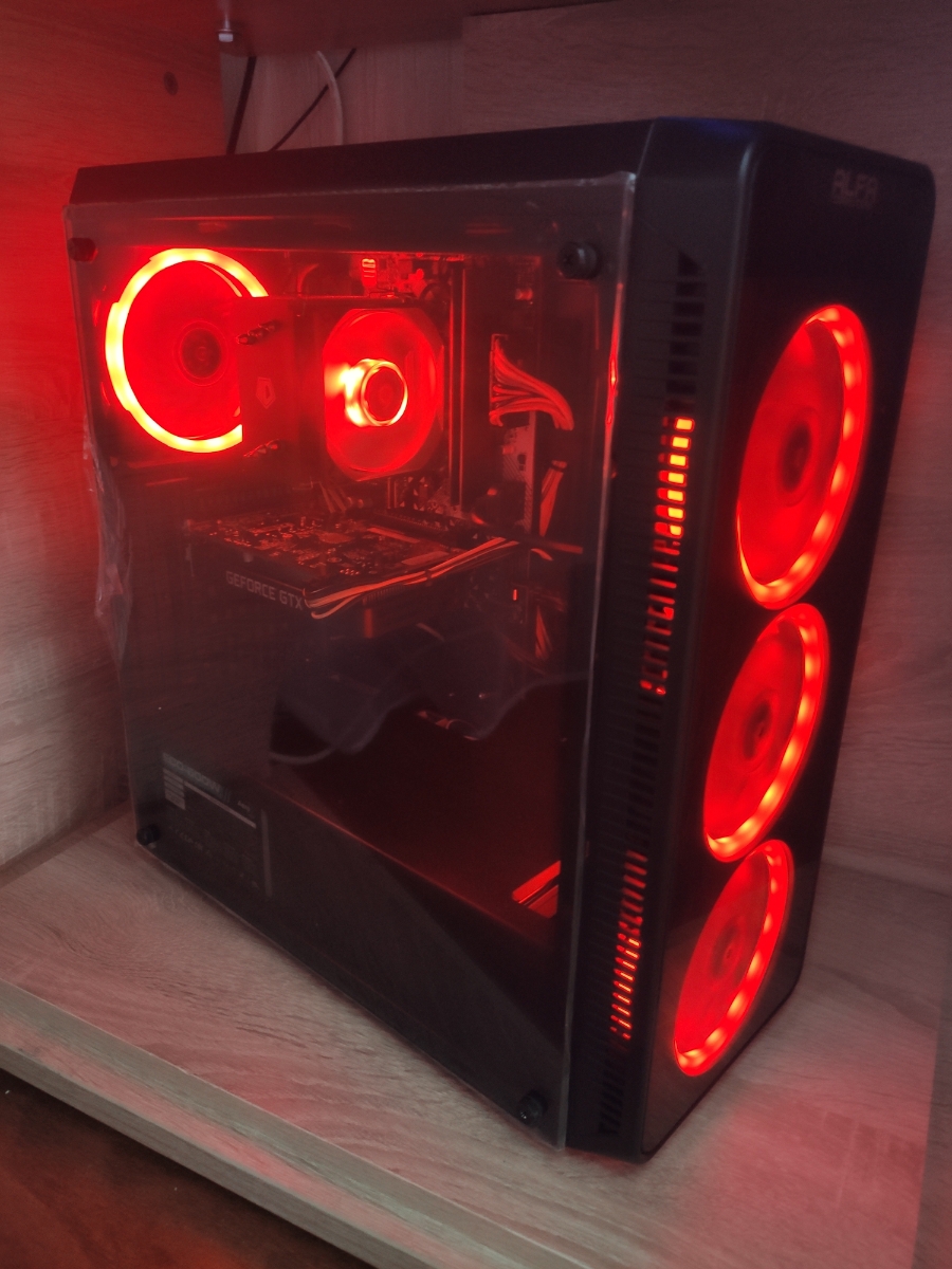 Системный блок Alfa computers Игровой Компьютер (AMD Ryzen 5 3500X / 16Gb / SSD 240Gb / HDD 500Gb / GTX 1650 4Gb / JP-X Red), черный, красный