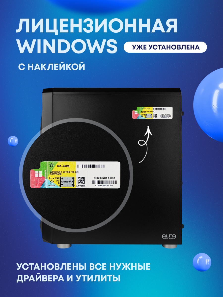 Системный блок Alfa computers (Intel Core i5-10400F (2.9 ГГц), RAM 8 ГБ, SSD 120 ГБ, HDD 500 ГБ, AMD Radeon R7, Windows 10 Pro)