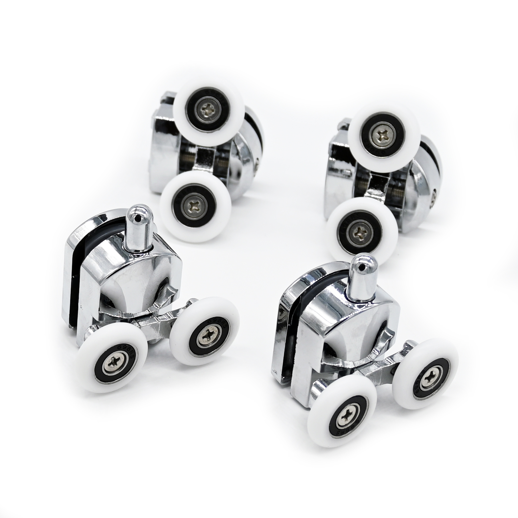 Ролики для душевой кабины двойные 23мм, хром (2 верх + 2 низ на кнопке), комплект А0607-4