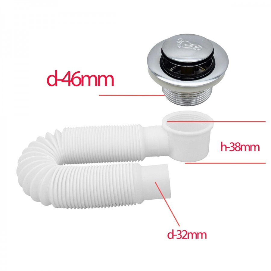 Гофра для сифона душевой кабины под систему Клик Клак 46 мм или слива-перелива