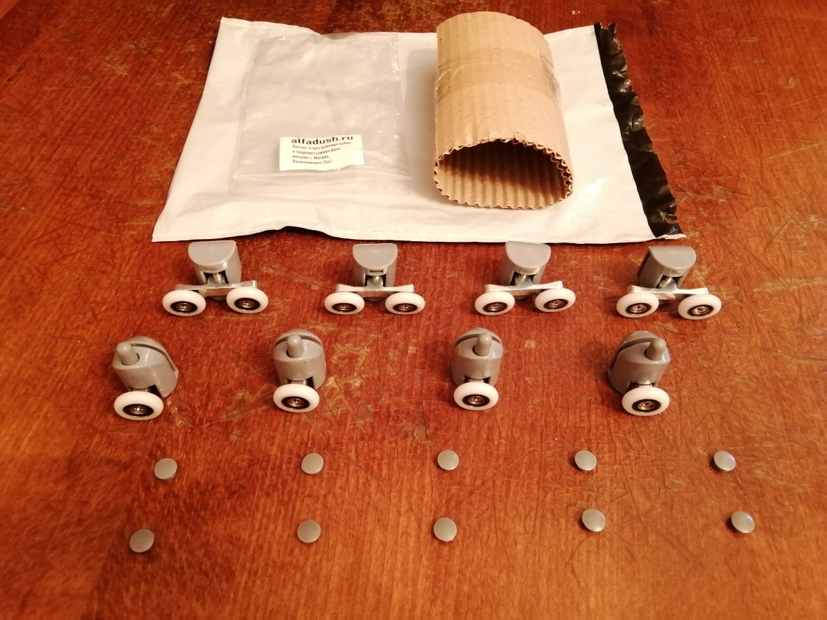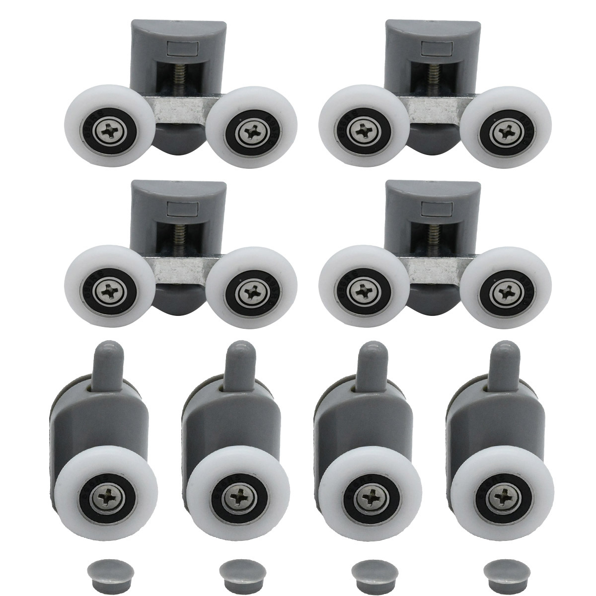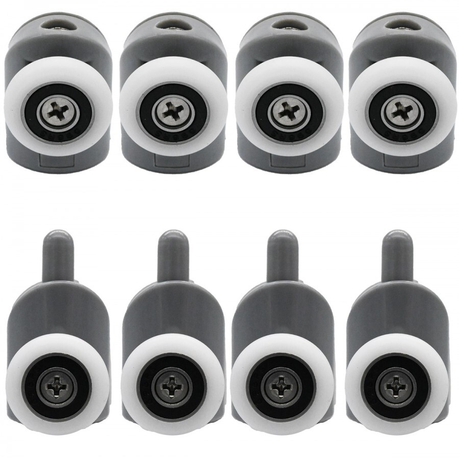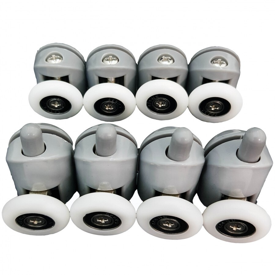 Ролики для душевой кабины одинарные 23 мм серые (4 верх + 4 низ на кнопке), комплект AF92677