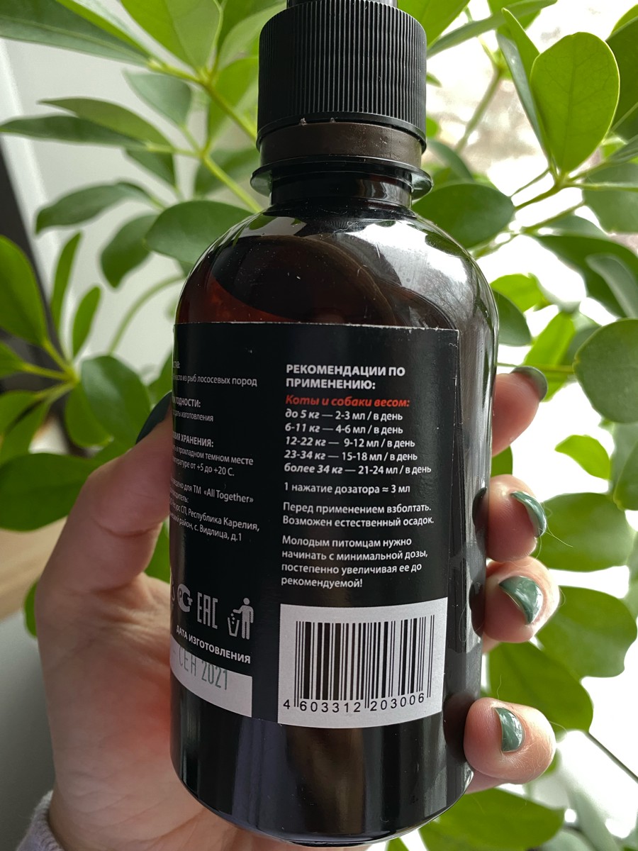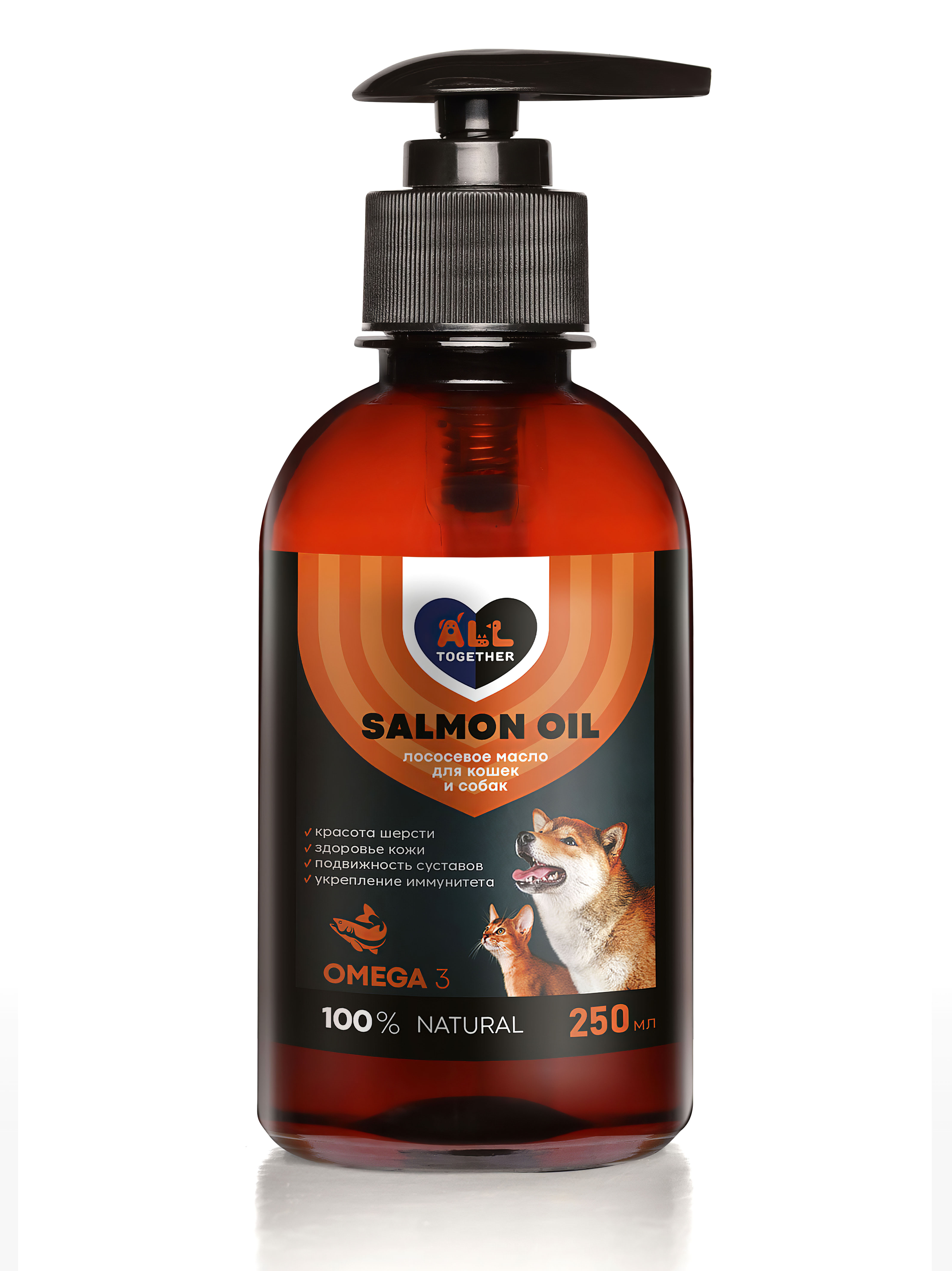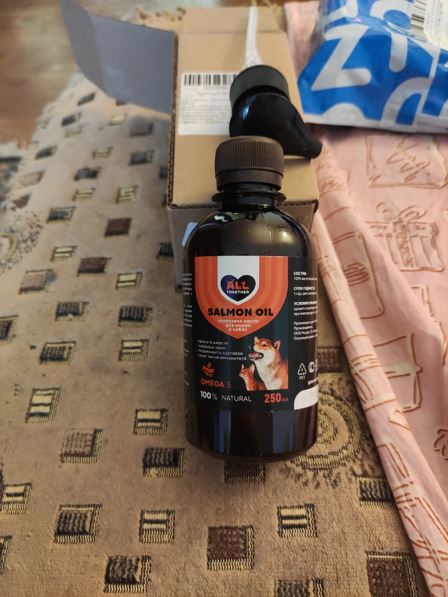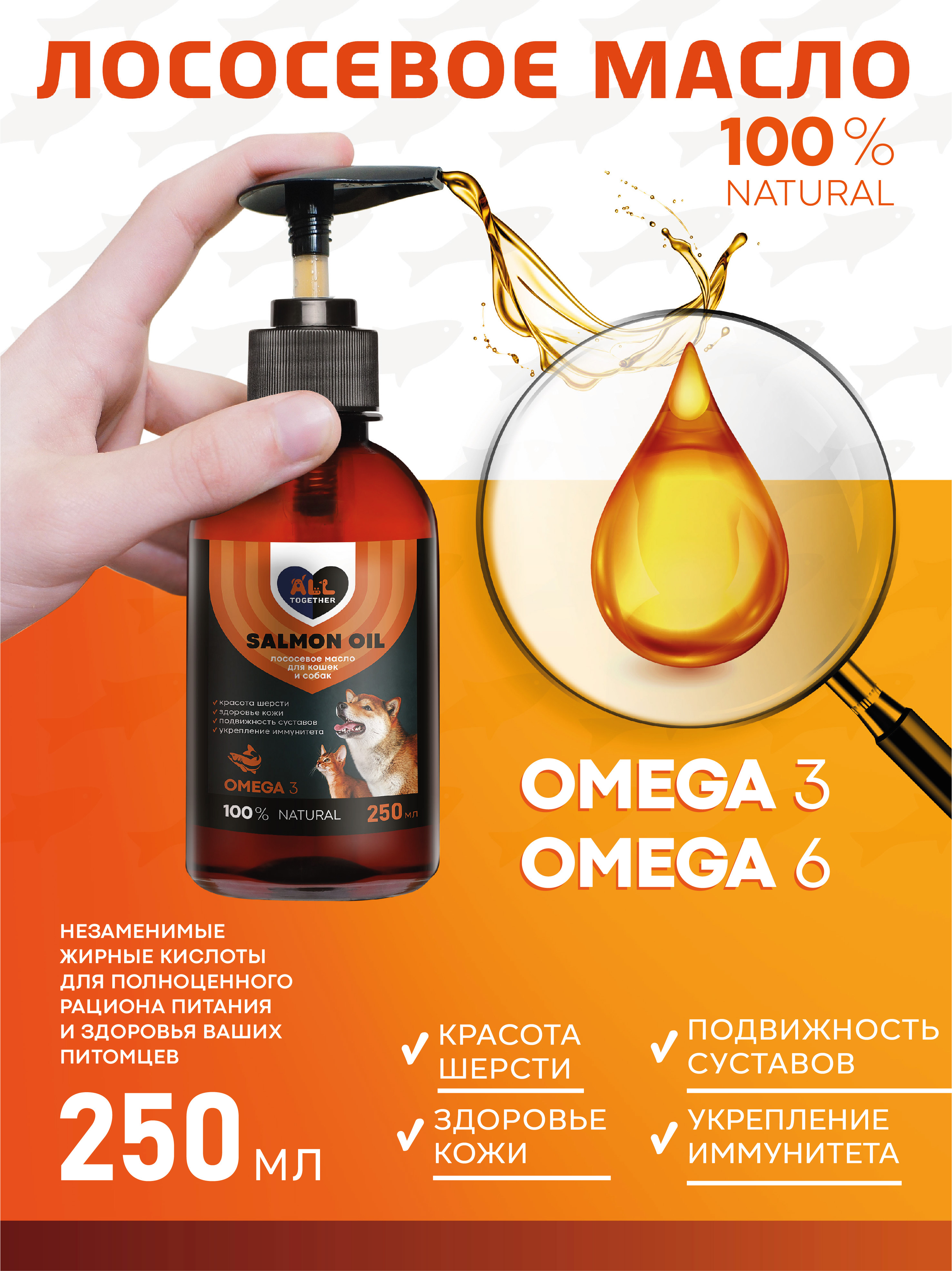 Лососевое масло для собак и кошек Омега 3 / масло лосося для животных Омега 6 / 500 мл