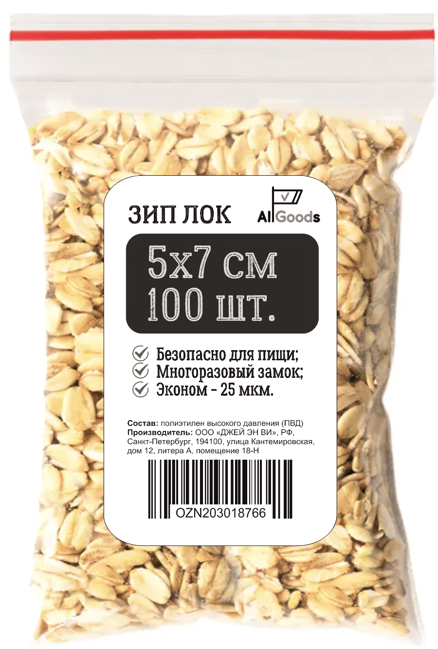 Зип пакет AllGoods, 5х7 см, 100 шт