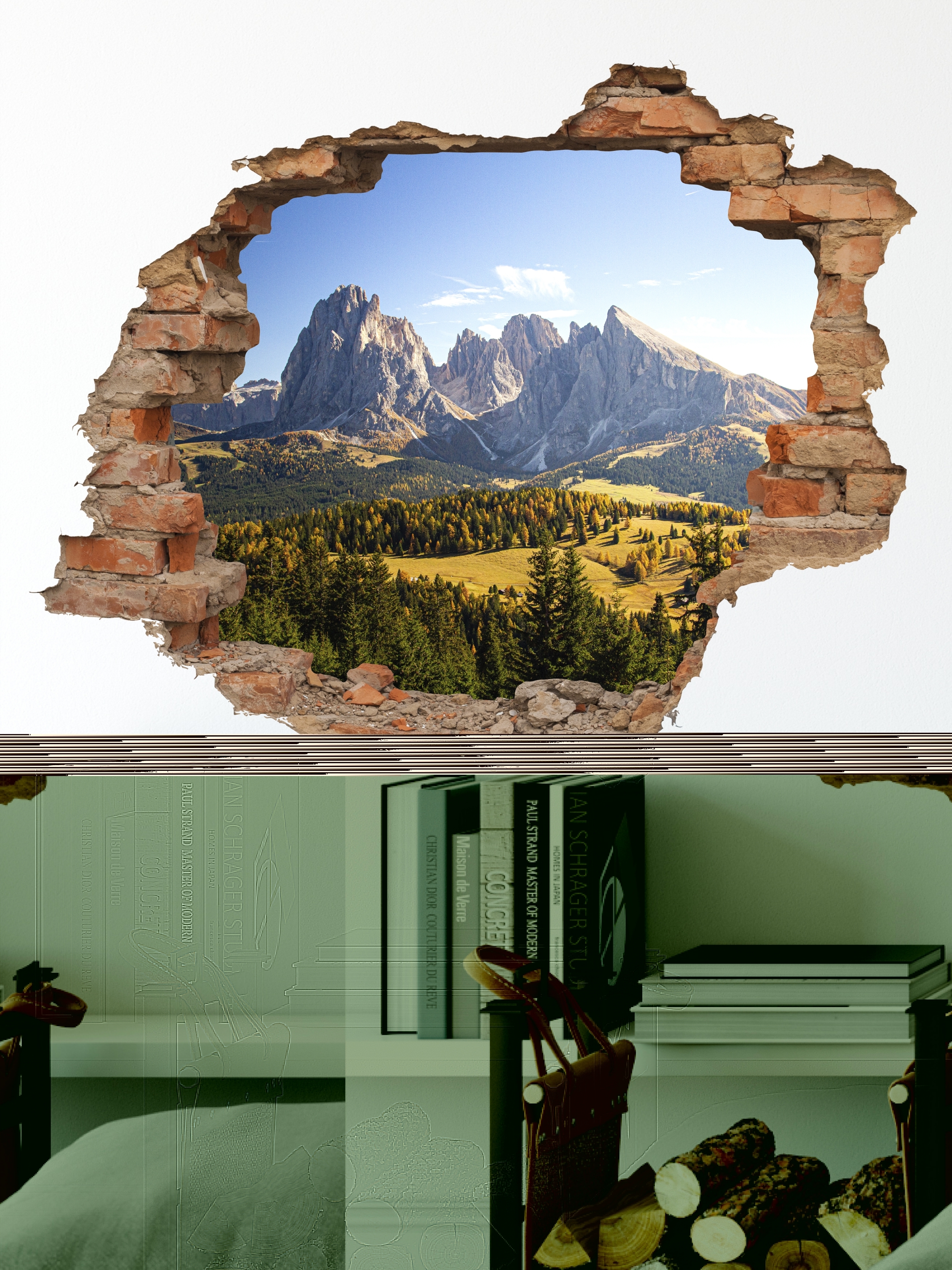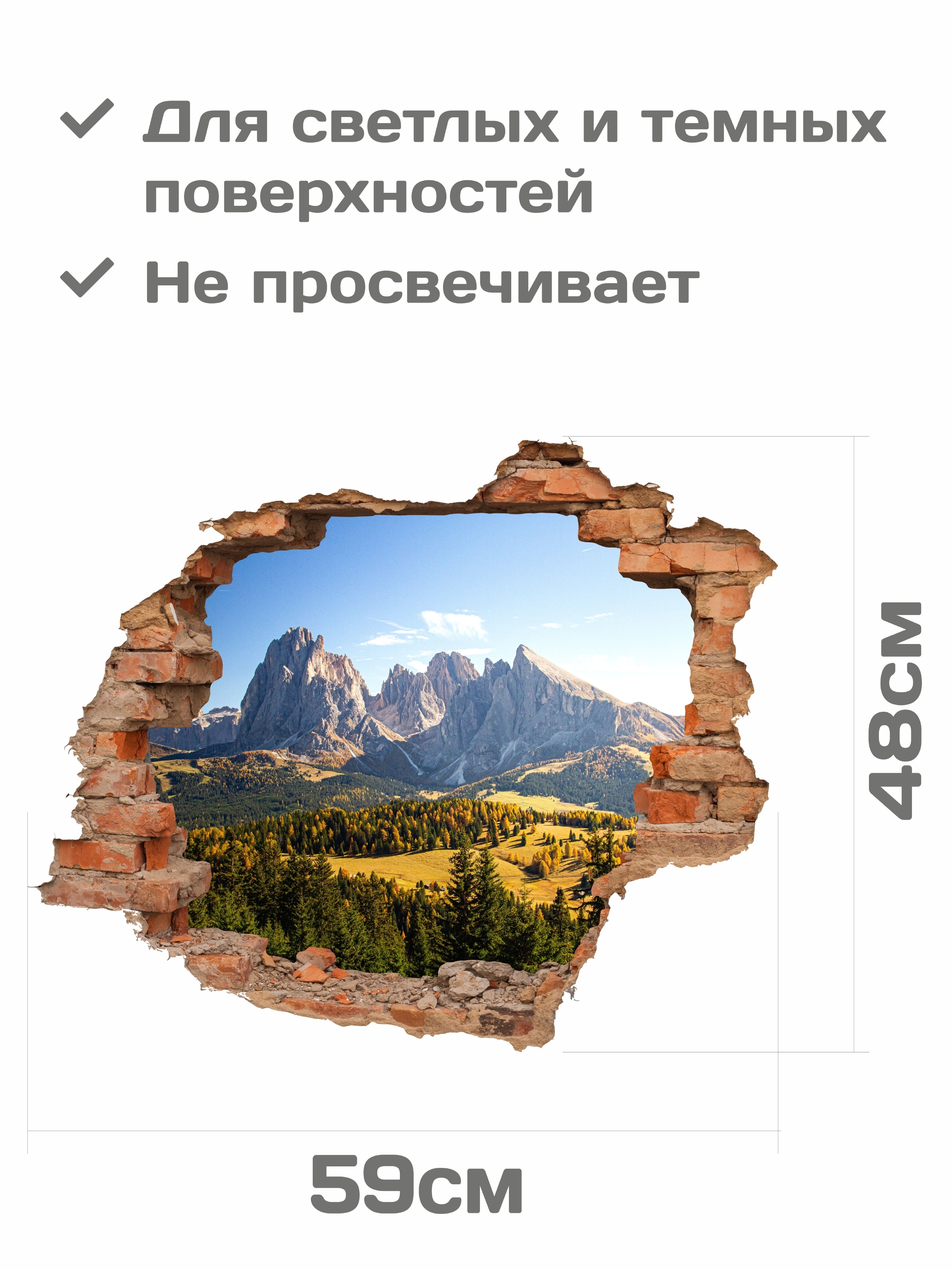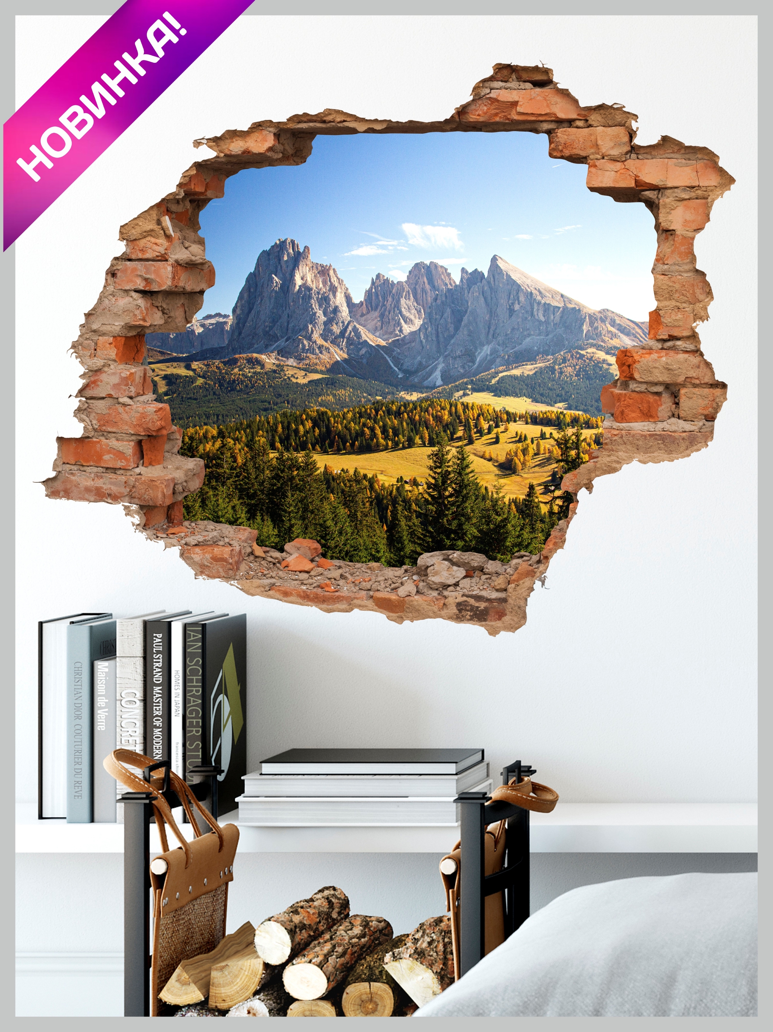 Наклейка интерьерная на стену / наклейка 3д / дыра в стене / на двери / на холодильник / на обои