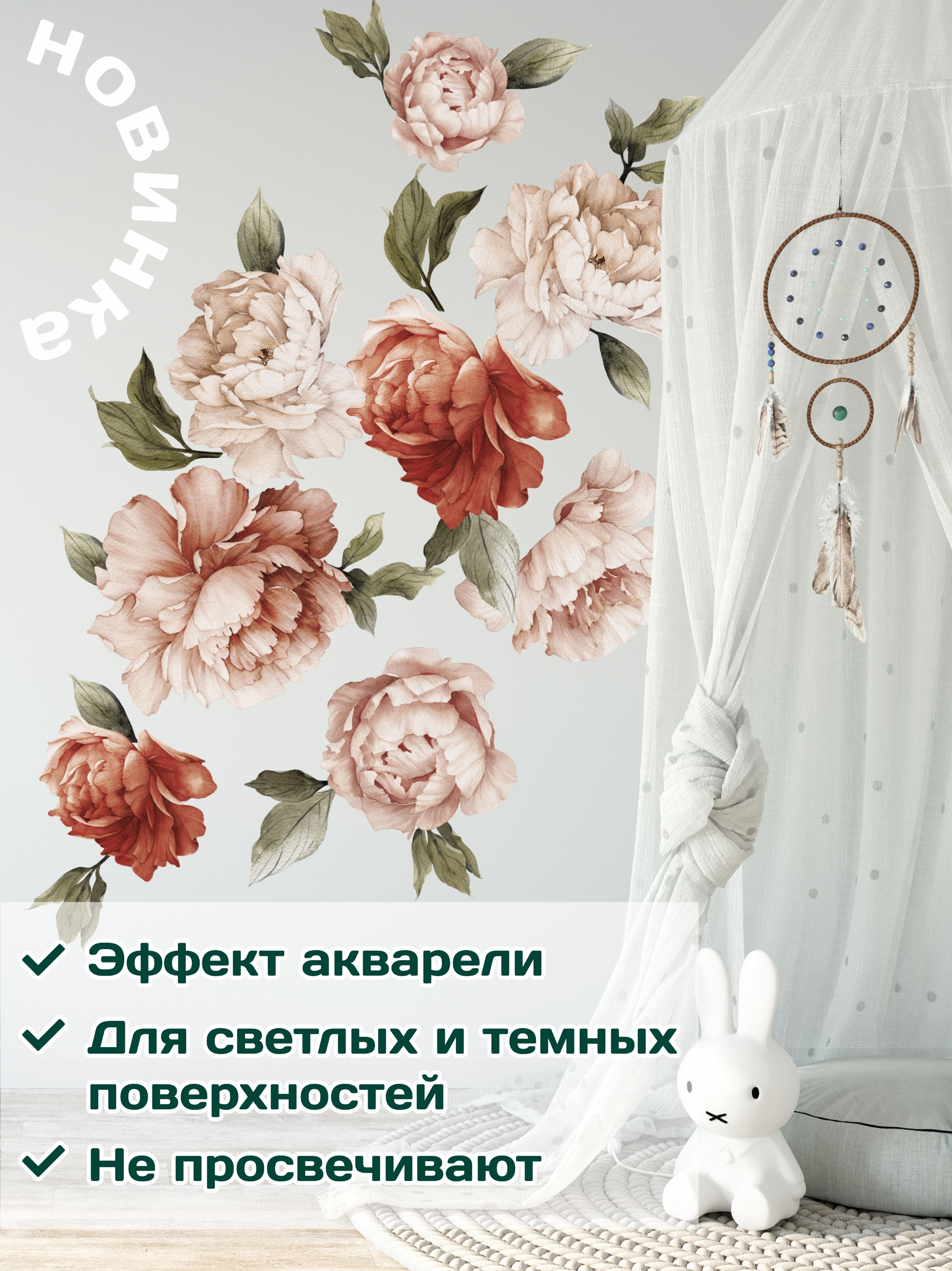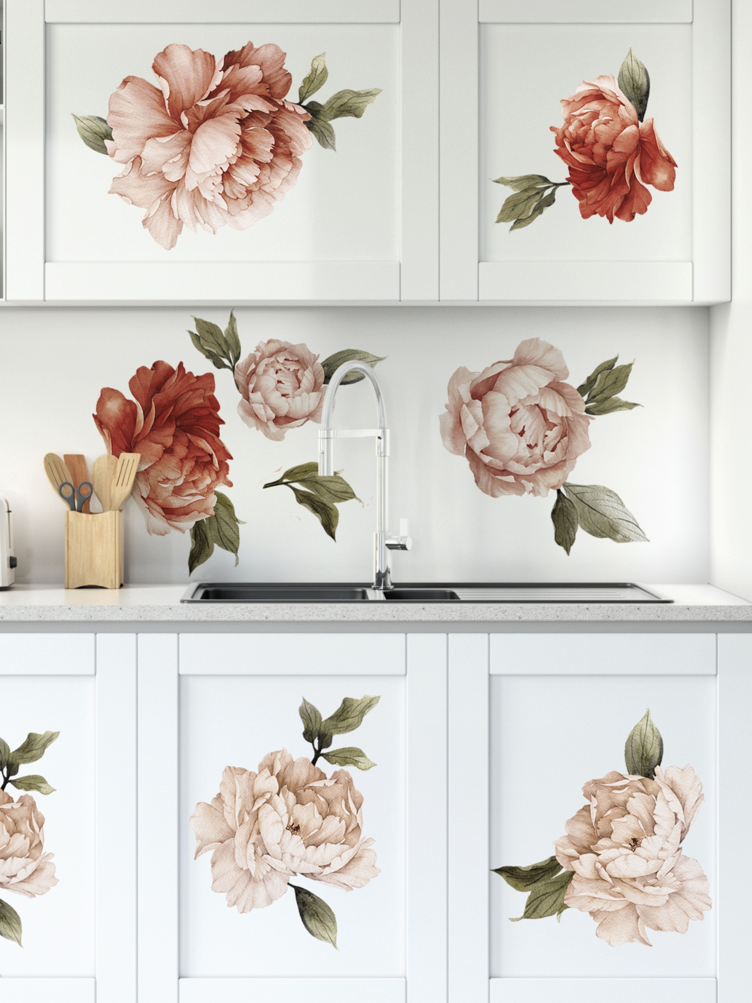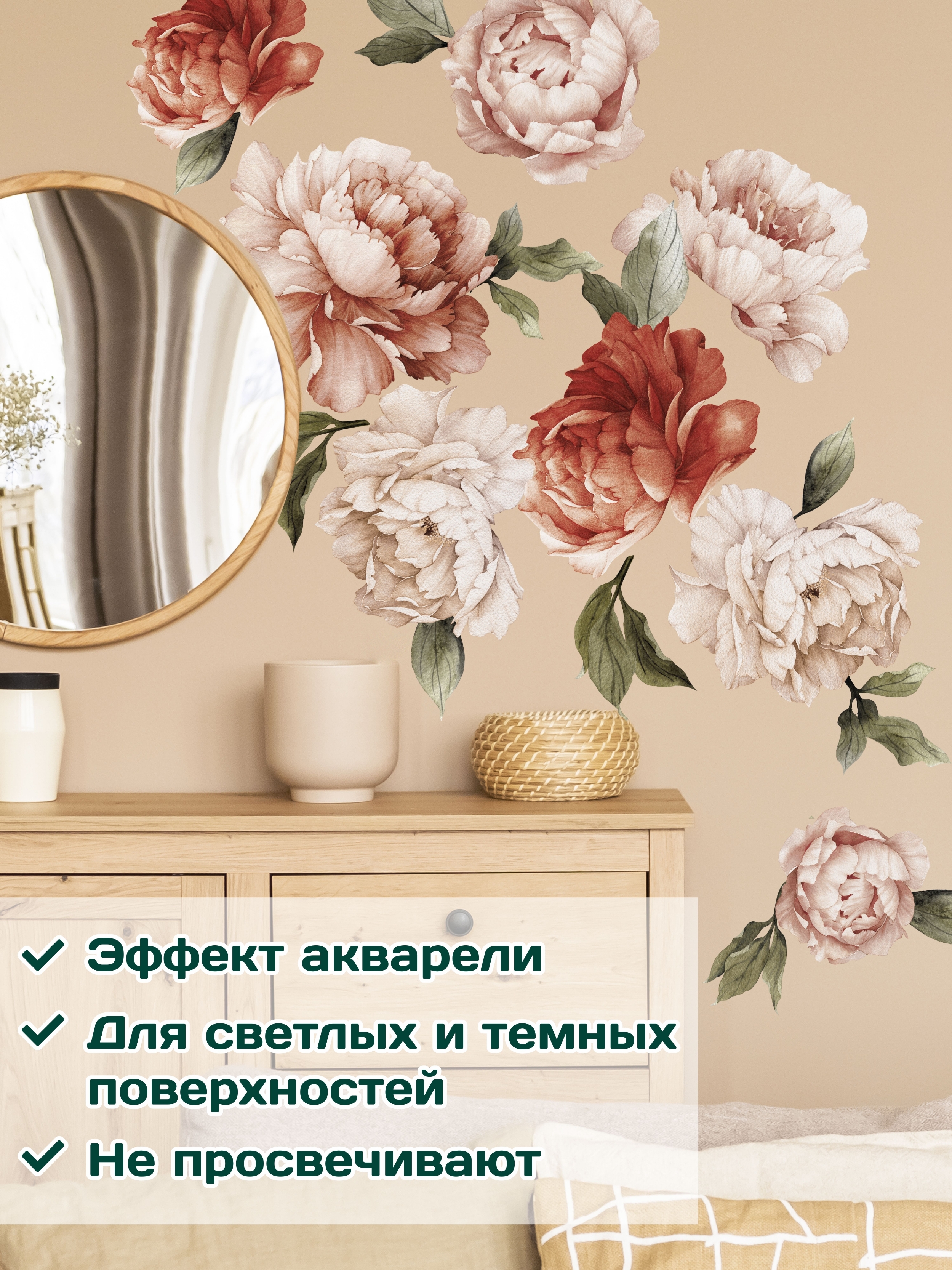 AllStick.ru / Наклейки для интерьера на стену Цветы Пионы. Декоративные стикеры на Обои, Холодильник, Дверь, Шкаф