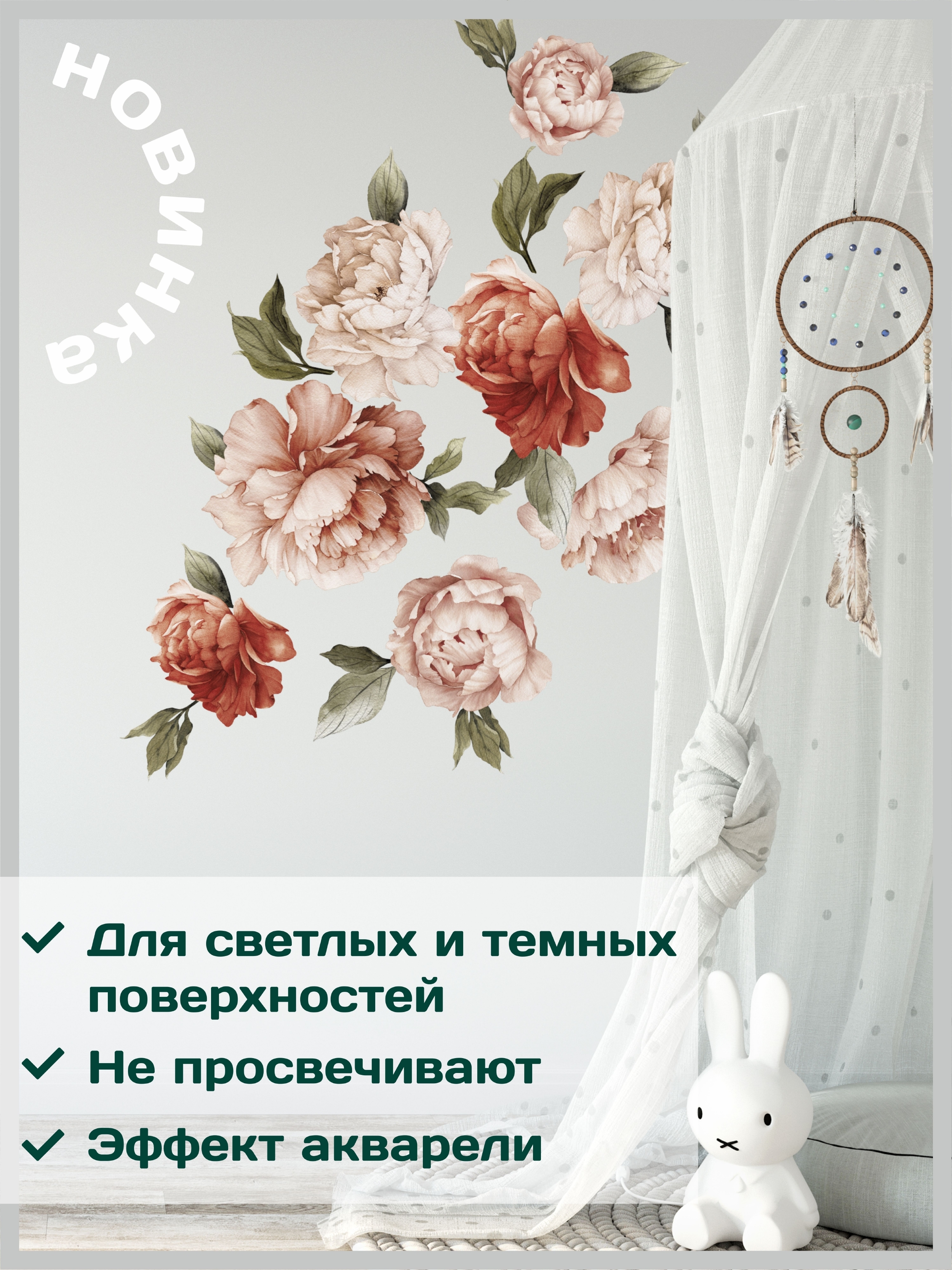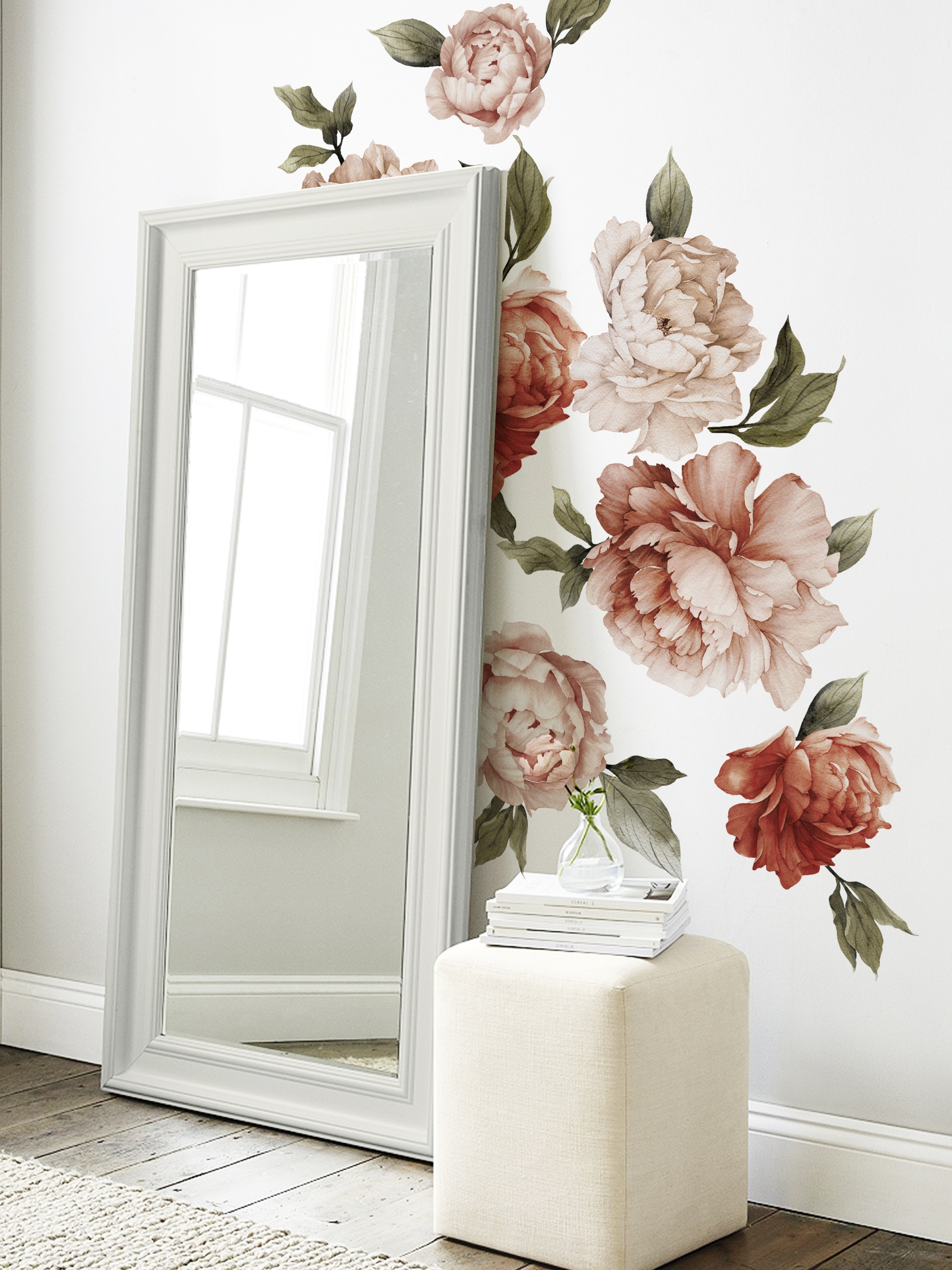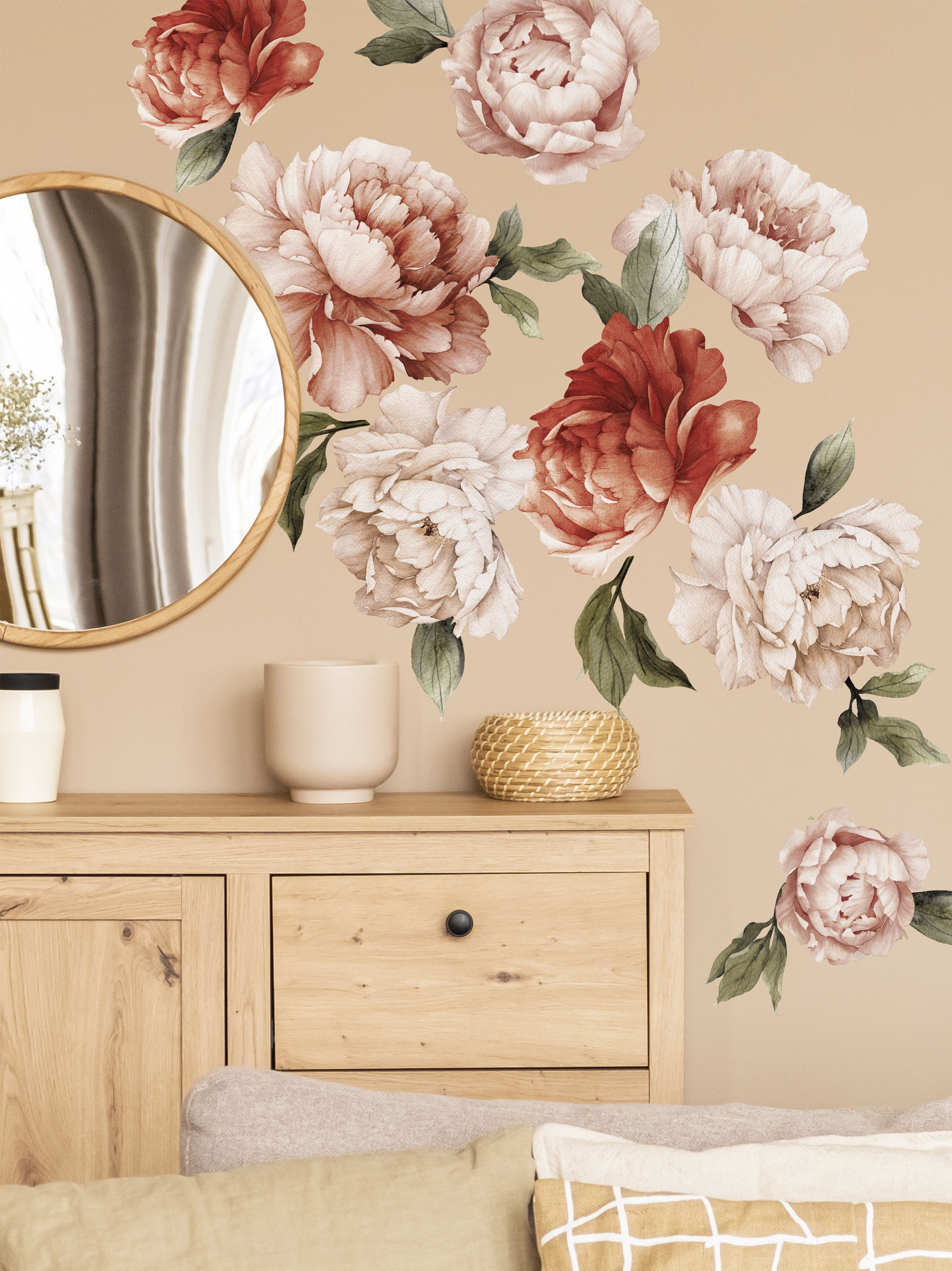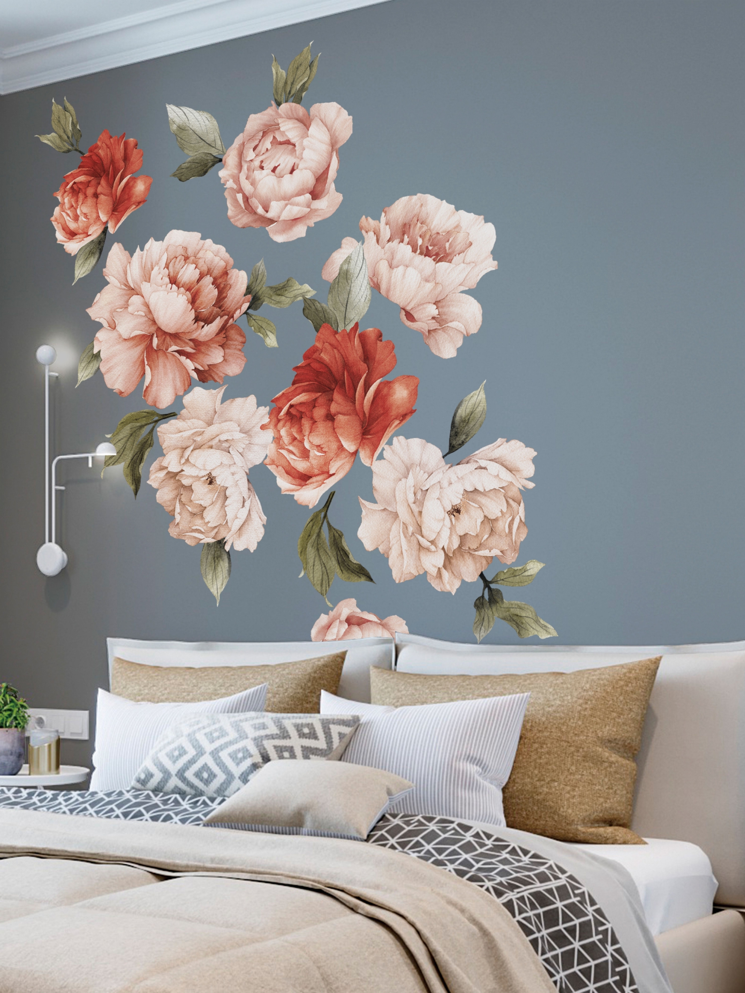 AllStick.ru / Наклейки для интерьера на стену Цветы Пионы. Декоративные стикеры на Обои, Холодильник, Дверь, Шкаф