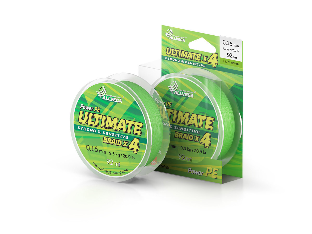 Шнур плетёный ALLVEGA "Ultimate" 92м светло-зелёный 0,14мм (7,8кг)