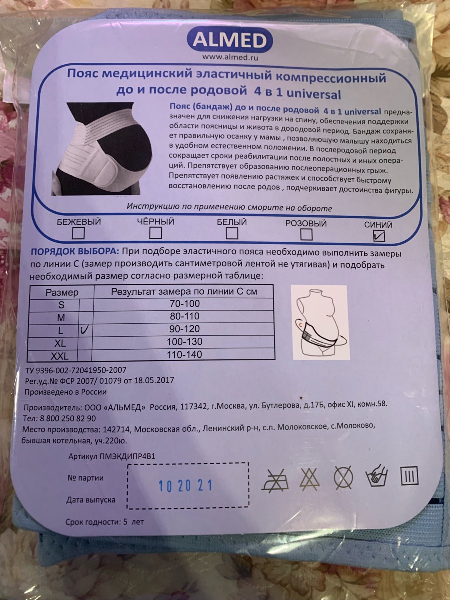 Бандаж, Пояс согревающий, Размер 5/XXL, До- и послеродовой Almed