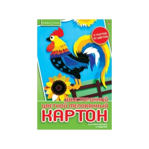 Цветной картон Хобби Тайм двусторонний мелованный Альт, A4, 5 л., 10 цв. в ассортименте