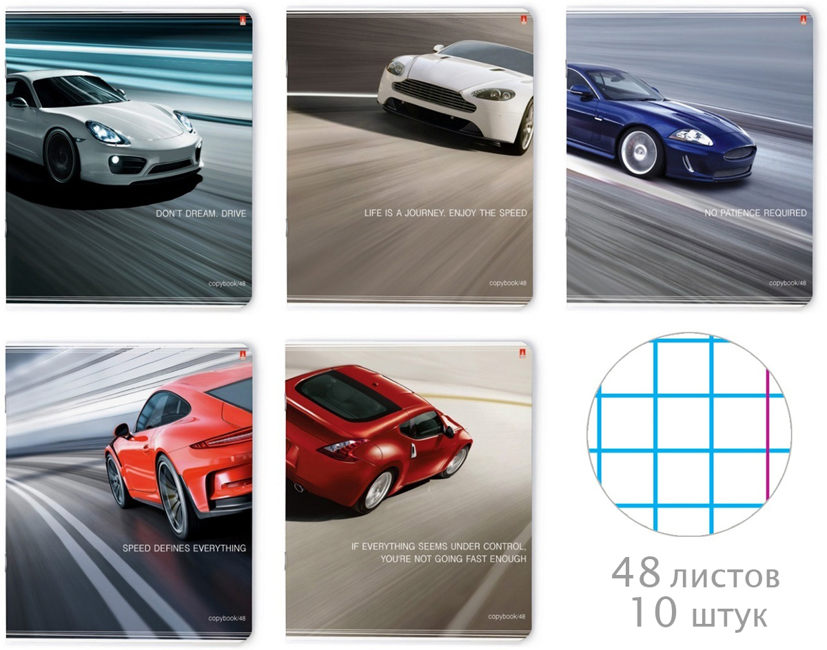 Тетрадь Альт "Машины-2", в клетку, 48 листов, A5, 10 шт