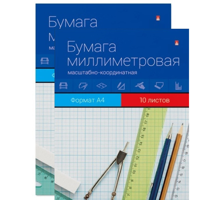 Альт / Набор миллиметровой бумаги / Бумага для черчения, А4, 2 упаковки по 10 листов