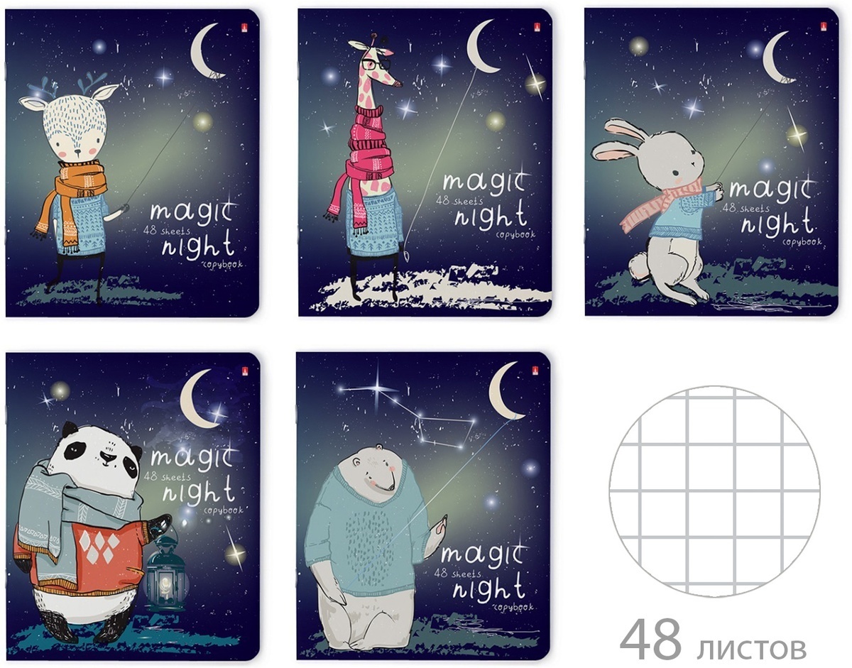 Тетрадь Альт Magic Night, в клетку, 48 листов, A5, 5 шт