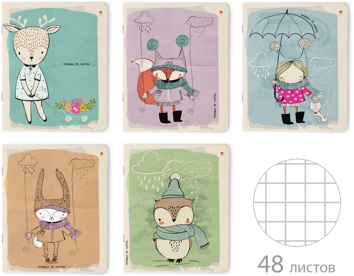 Тетрадь Альт Animals in Rain, в клетку, 48 листов, A5, 5 шт