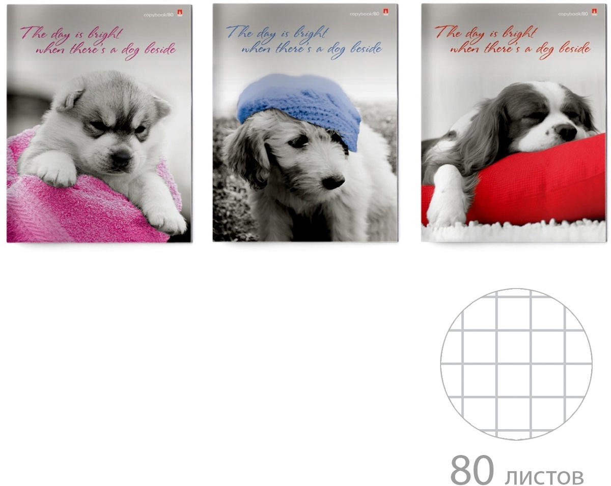 Тетрадь Альт "Щенки Контрасты new", в клетку, 80 листов, A4, 3 шт