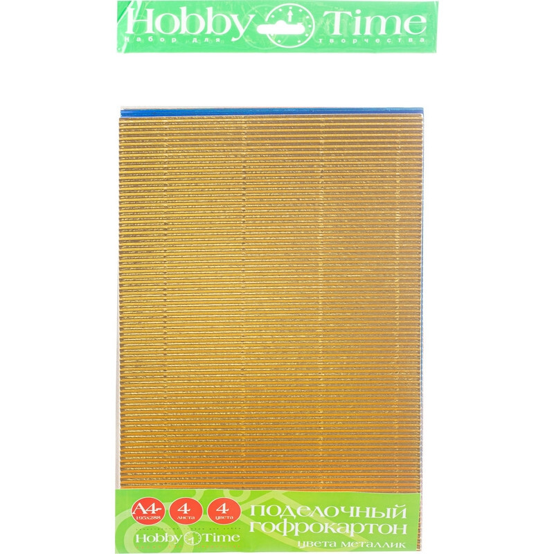 Альт / Картон цветной гофрированный, металлизированный 4 листа, 4 цвета, 195х288 мм