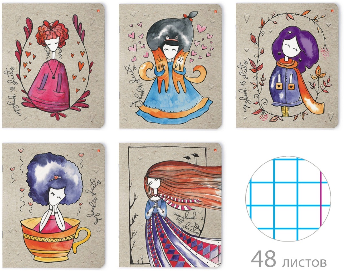 Тетрадь Альт "Девушка Мечта", в клетку, 48 листов, A5, 5 шт
