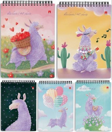 Блокнот на спирали А7 40л клетка "ЛАВАНДОВЫЕ ЛАМЫ" 5 видов 3-40-247 Альт 5 шт.