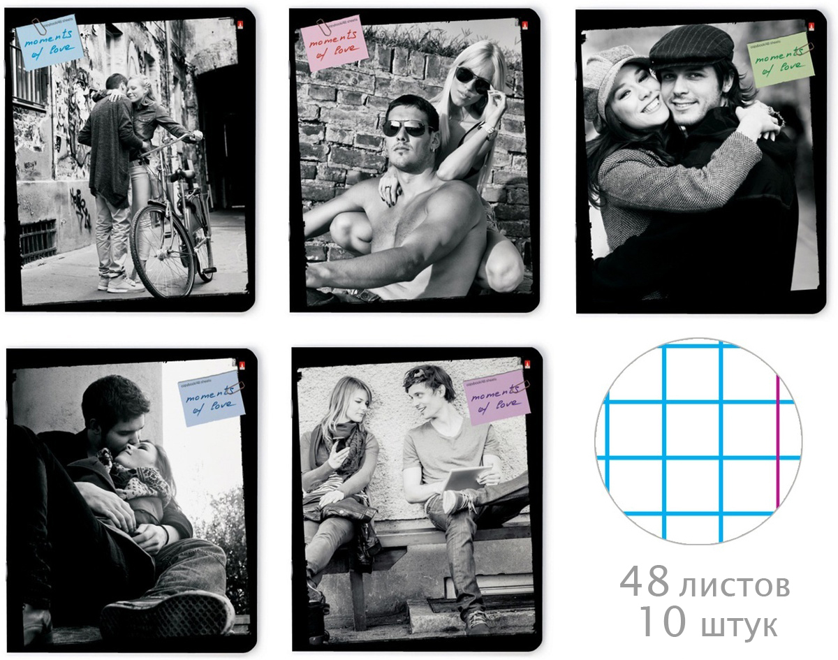 Тетрадь Альт "Романтические пары", в клетку, 48 листов, A5, 10 шт