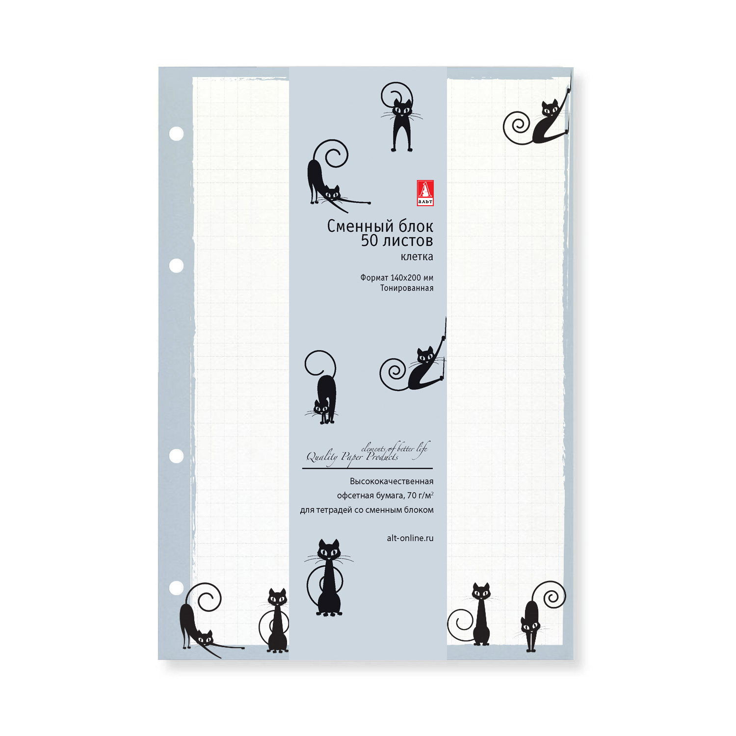 Сменный блок для тетради на кольцах А5 50 листов Черные кошки, клетка