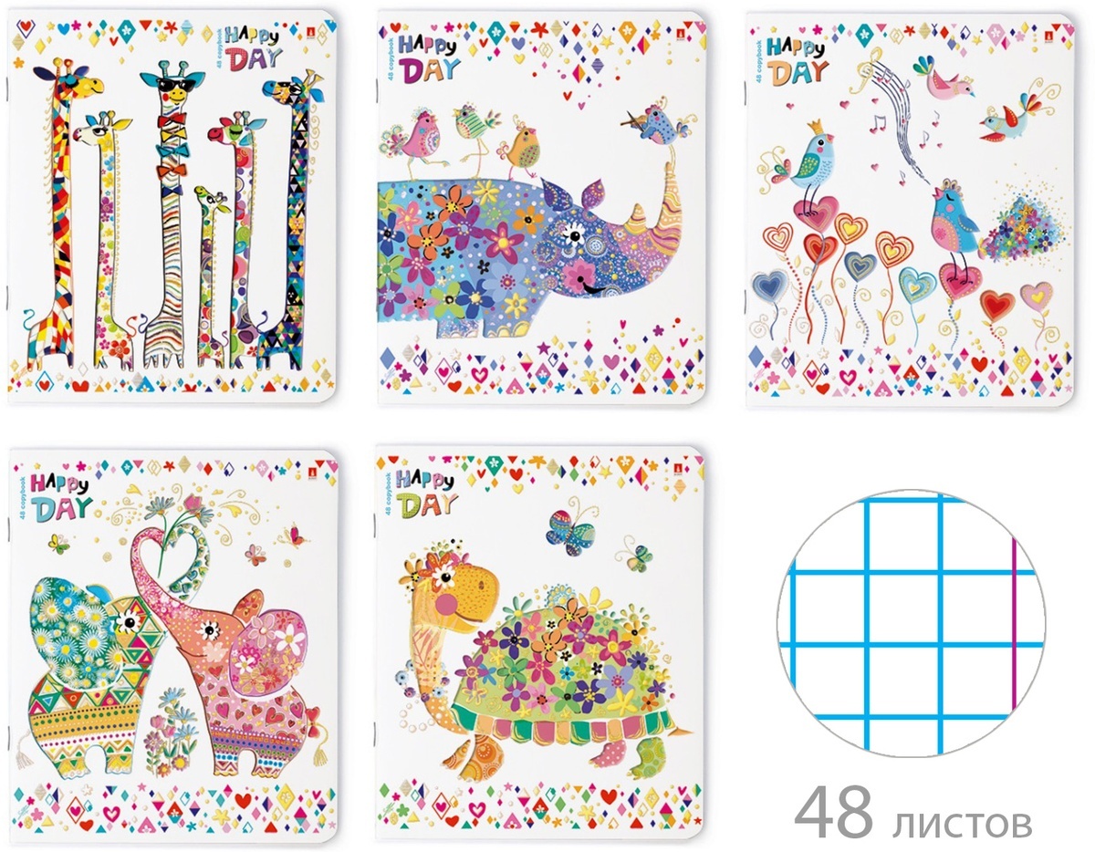 Тетрадь Альт "Счастливый день", в клетку, 48 листов, A5, 5 шт