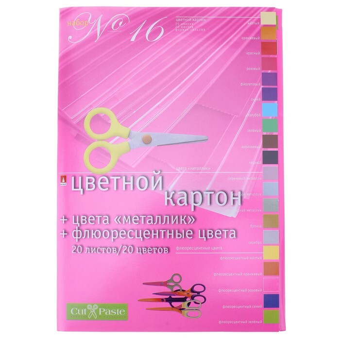 Набор цветного картона А4 металлик, флюоресцентный номер 6 20 листов 20 цветов