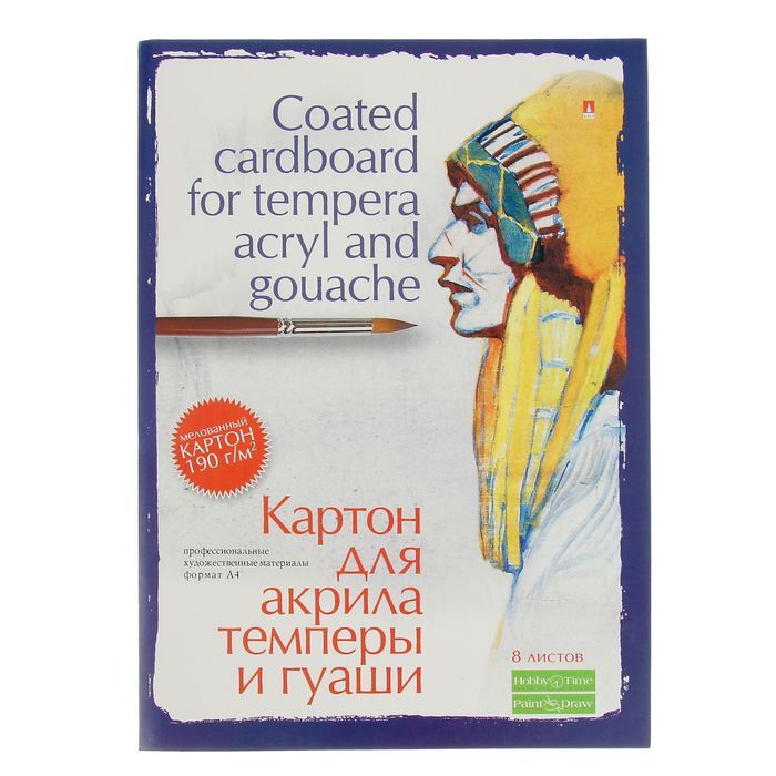 Картон для акрила, темперы и гуаши А4, 8 листов "Профессиональная серия", мелованный, 190 г/м2