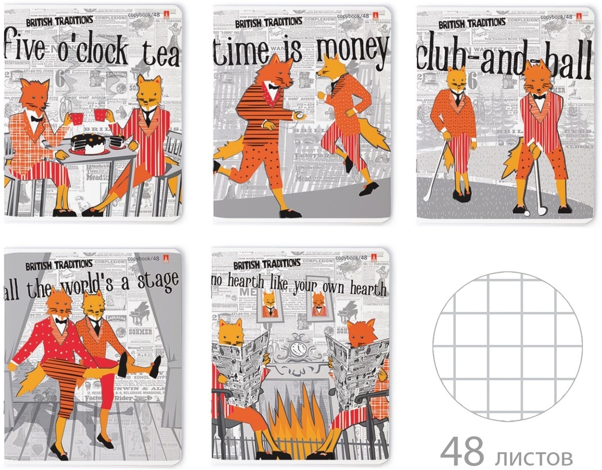 Тетрадь Альт "Лисы-аристократы", в клетку, 48 листов, A5, 5 шт