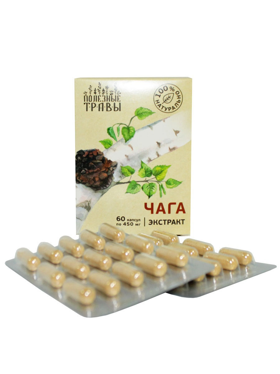 Чага, растительный экстракт, серии Полезные травы, 60 капсул